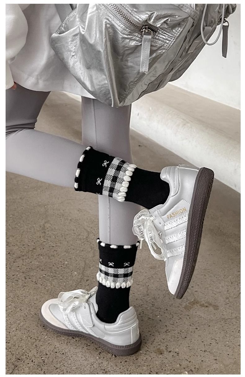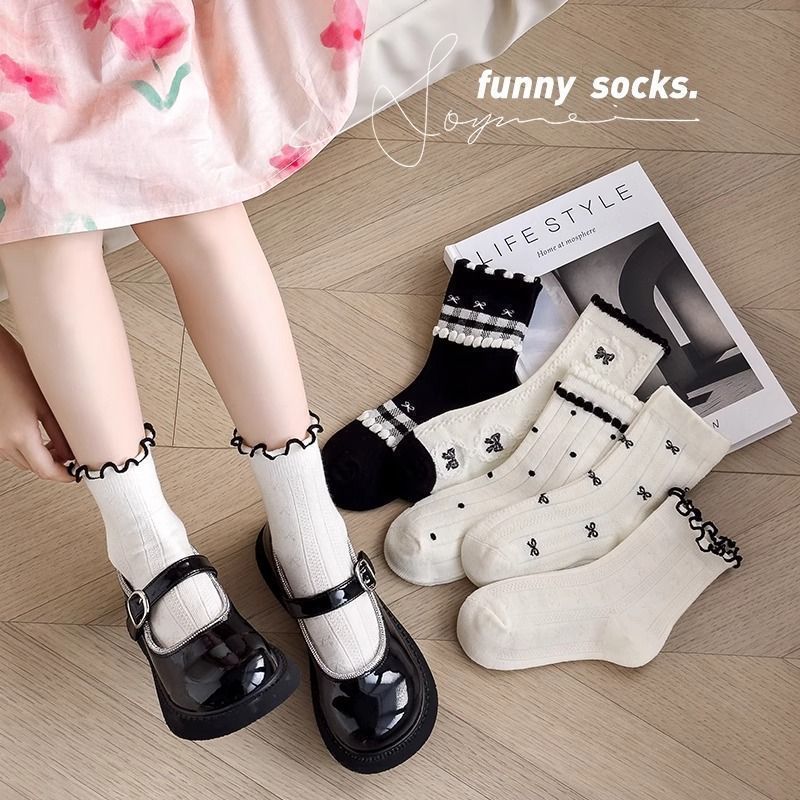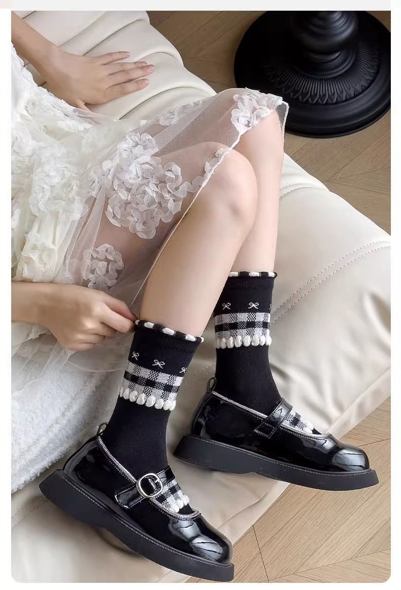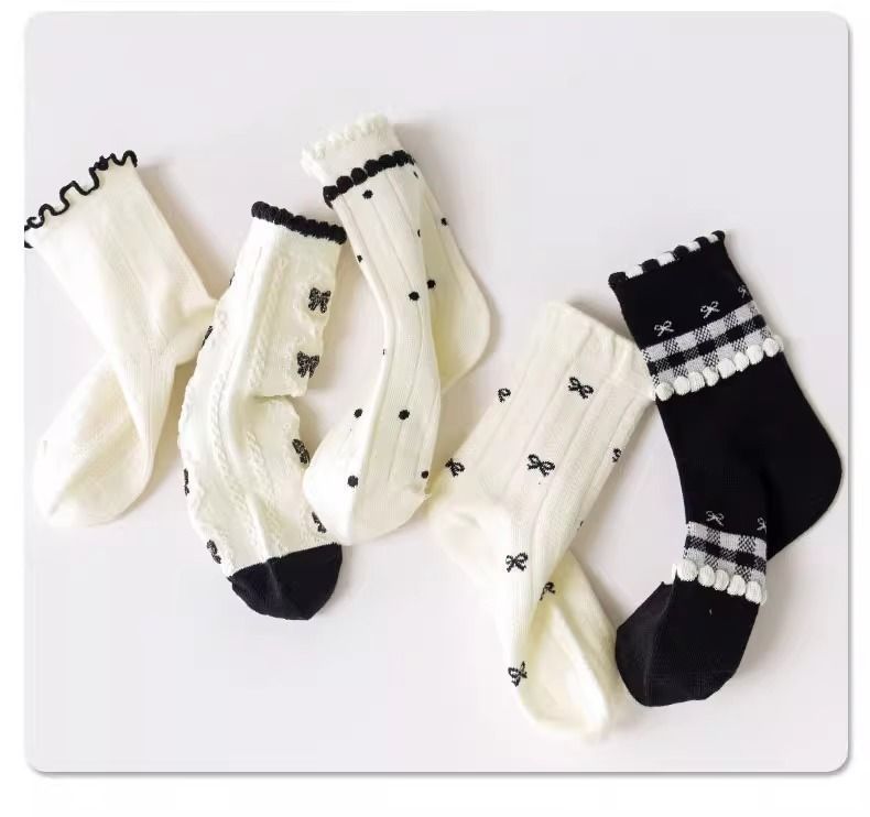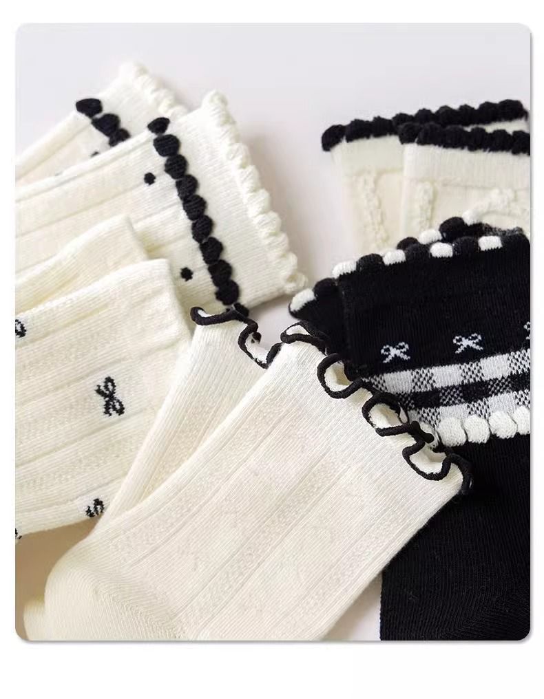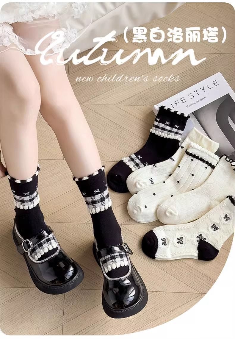 여자 얇은 어린이 양말 레이스 메쉬 흑백 활 통기성 공주 로리타 중간 튜브 탈취제 소녀스토어 가기