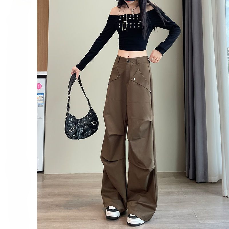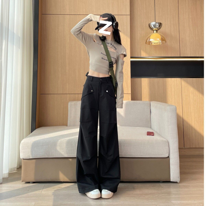 여성용 카고 바지 2025 봄 여름 한국 스타일 새로운 야외 하이킹 바지 하이 웨이스트 루즈 슬리밍 스포츠 와이드 레그 롱 팬츠스토어 가기