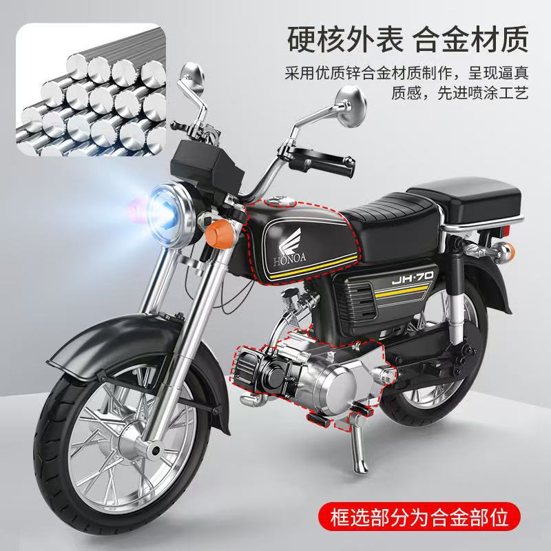 Douyin 어린이 합금 장난감 자동차 장식품 Jia Ling JH-70 오토바이 모델 시뮬레이션 복고풍 오토바이 선물