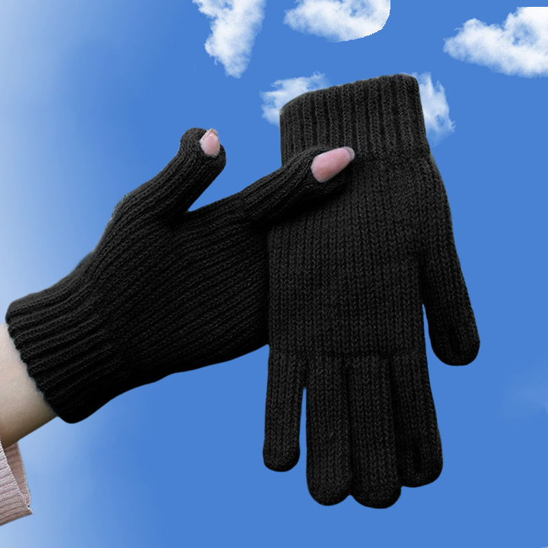 여성용 따뜻한 장갑, 방풍 및 두꺼운 다섯 손가락 따뜻하고 벨벳 야외 사이클링 남성용 손가락 벨벳 터치 스크린 장갑스토어 가기