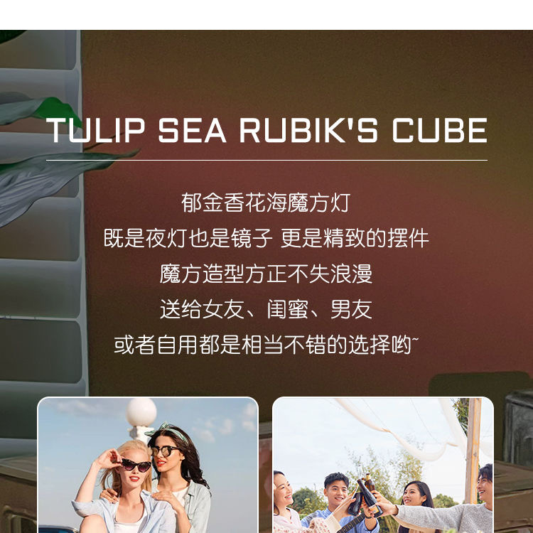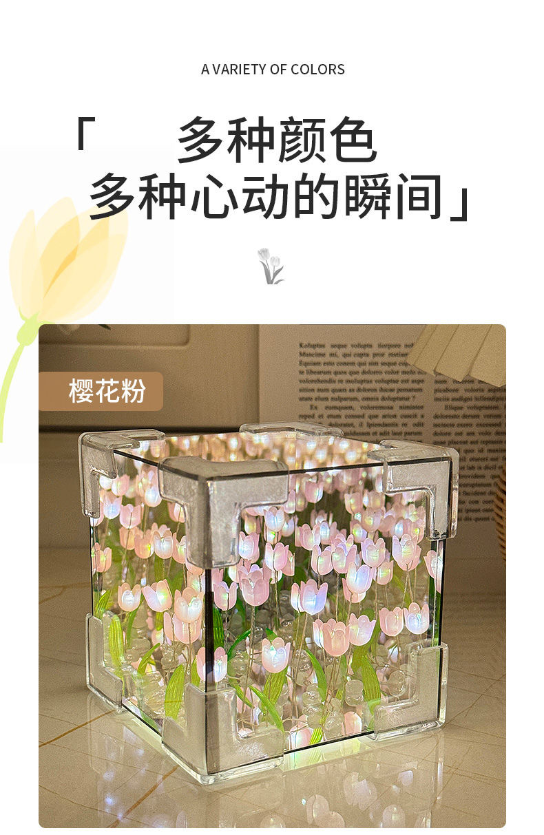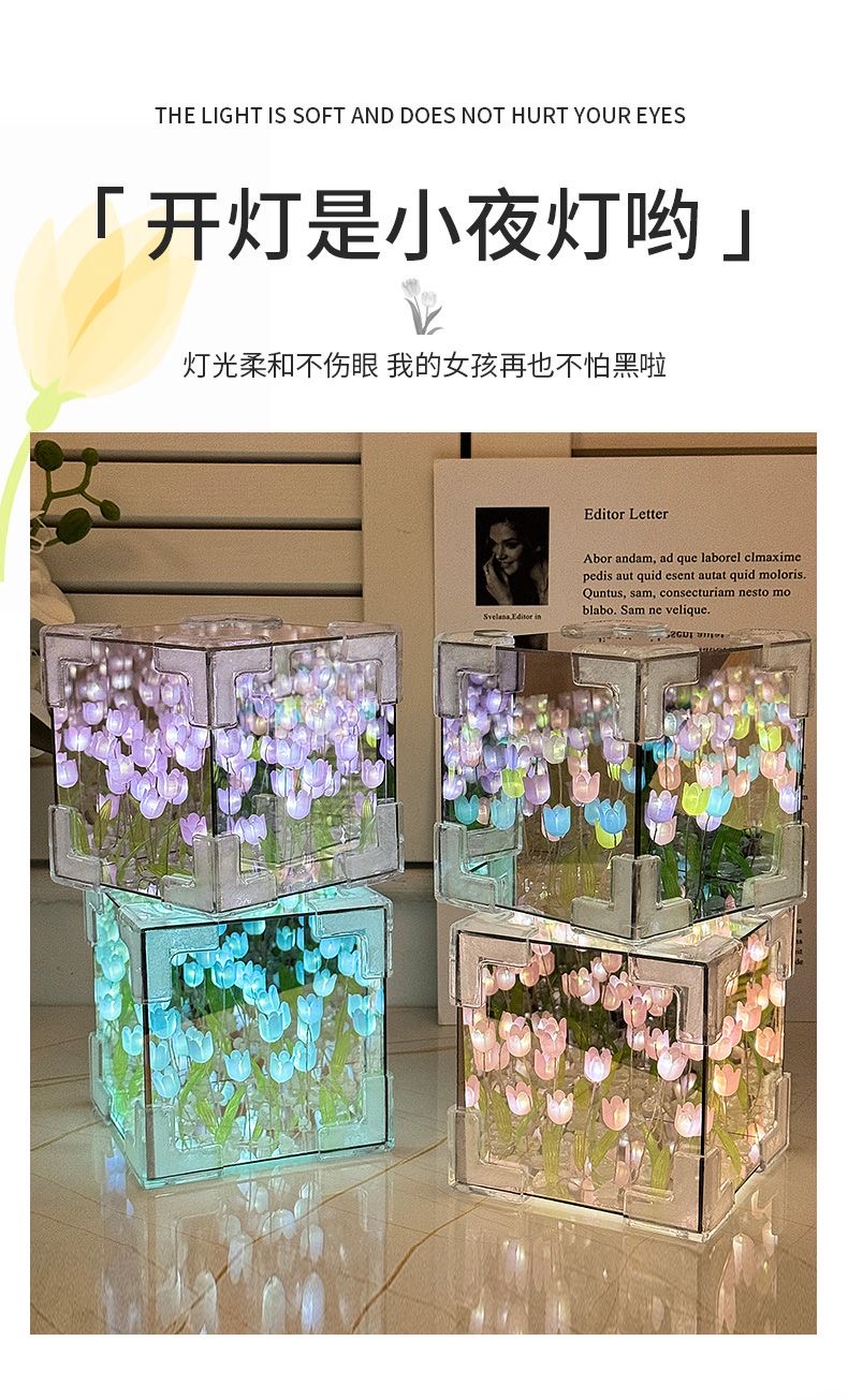 꽃 바다 루빅스 큐브 램프 튤립 작은 램프 거울 튤립 야간 조명 diy 수제 크리 에이 티브 램프 입체 거울