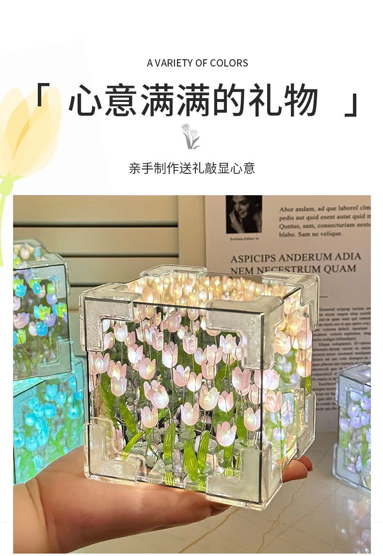 • 루빅스 큐브 튤립 꽃 바다 야간 조명 [20색]