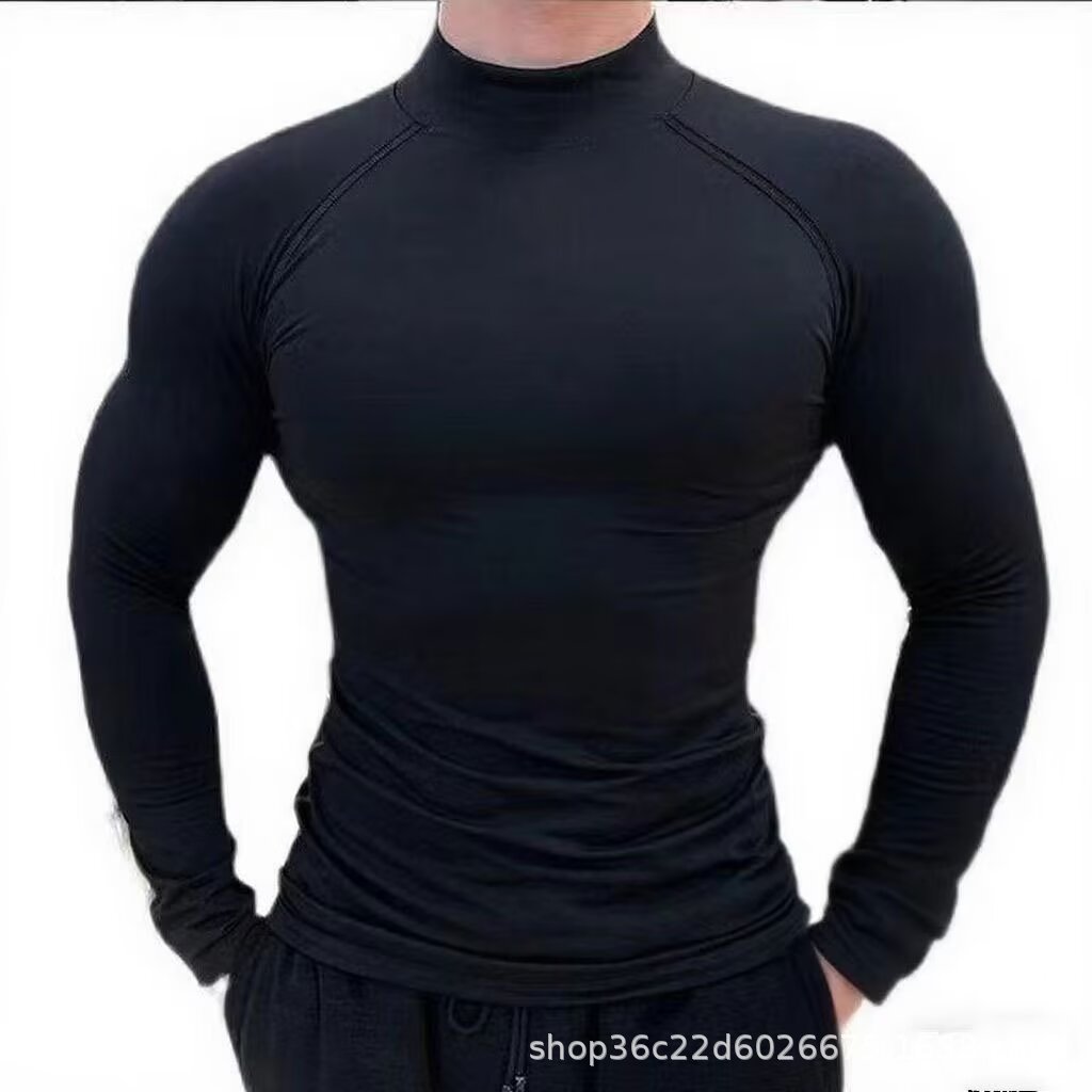 피트니스 의류 남성 여름 스포츠 스타킹 고탄성 통기성 긴팔 달리기 속건성 하이 칼라 압축 농구 베이스 레이어