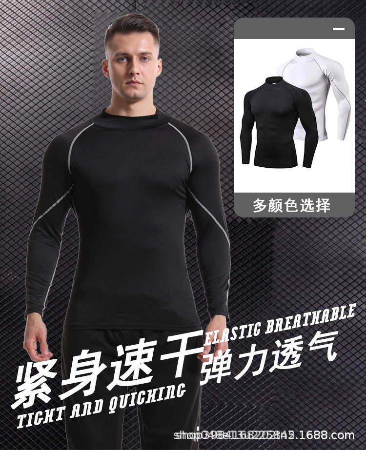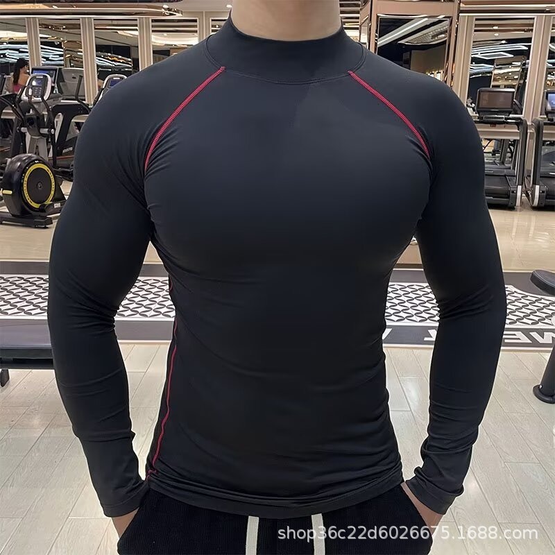 피트니스 의류 남성 여름 스포츠 스타킹 고탄성 통기성 긴팔 달리기 속건성 하이 칼라 압축 농구 베이스 레이어스토어 가기