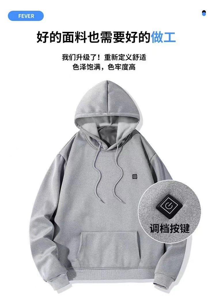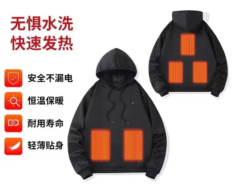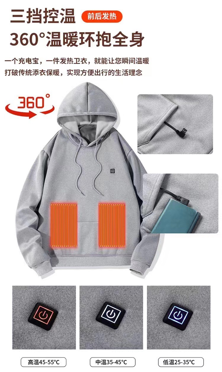 2025 유럽과 미국의 국경 간 Amazon 독립 스테이션 USB 가열 스웨트 셔츠 전기 가열 따뜻한 후드 티셔츠 캐주얼 남성스토어 가기