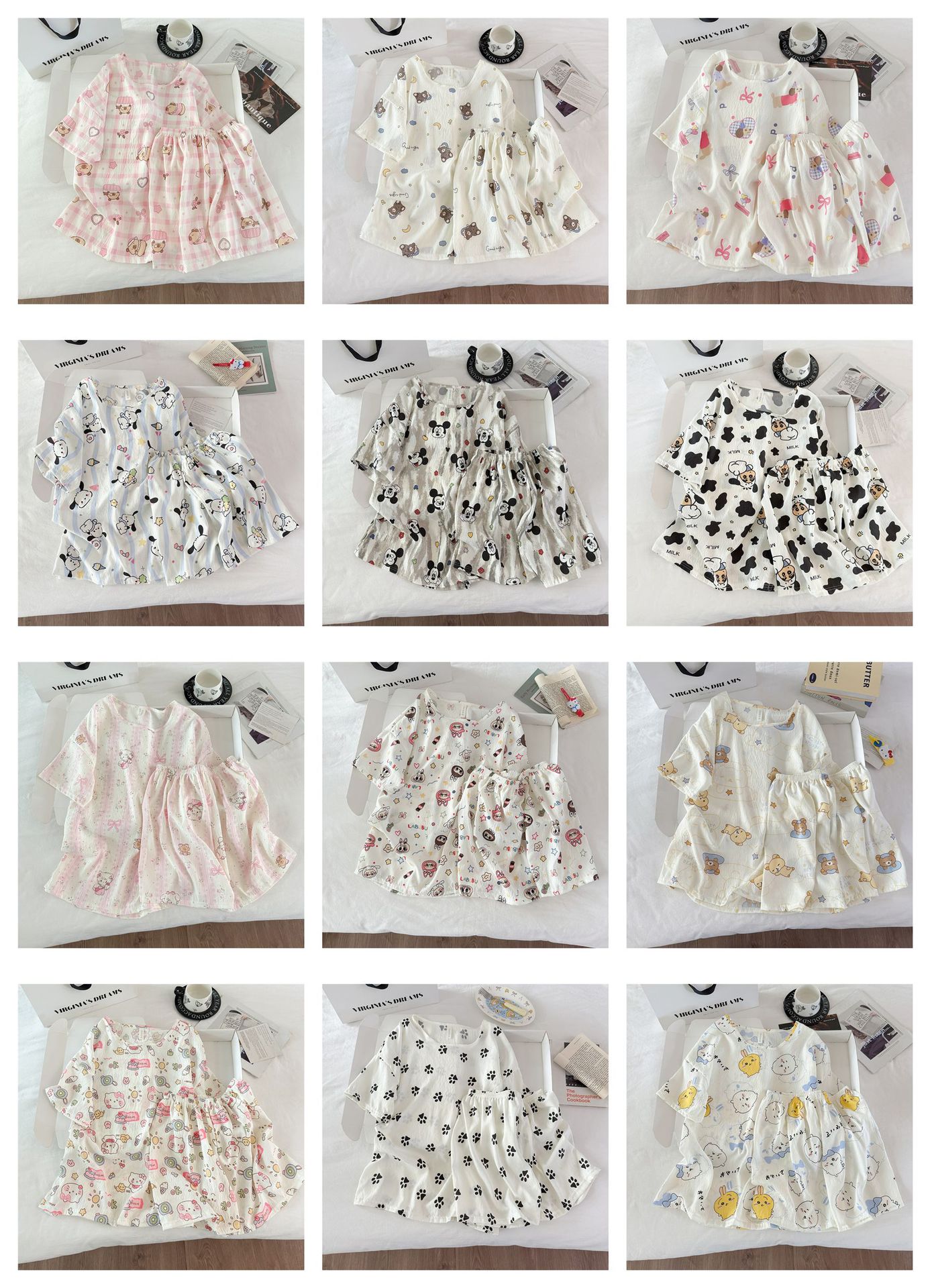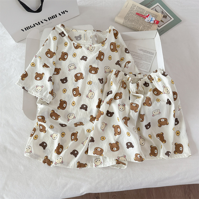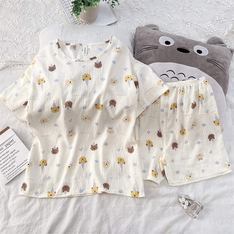 여성용 파자마 공장 직접 판매 Xia Yunduo 면화 만화 달콤하고 귀여운 학생 풀오버 라운드 넥 ins 스타일 대외 무역 판매량스토어 가기