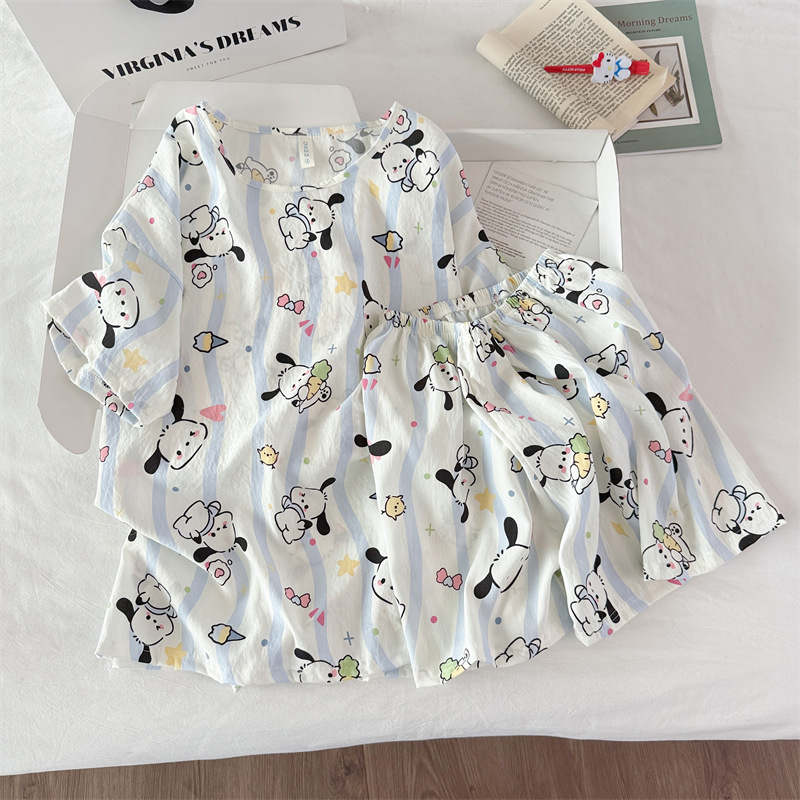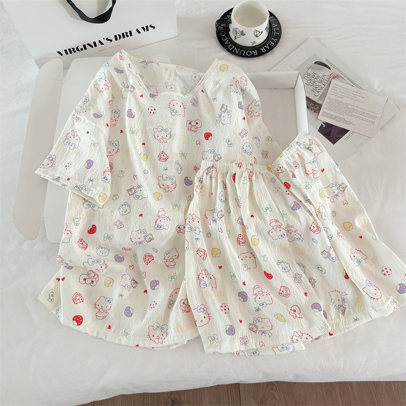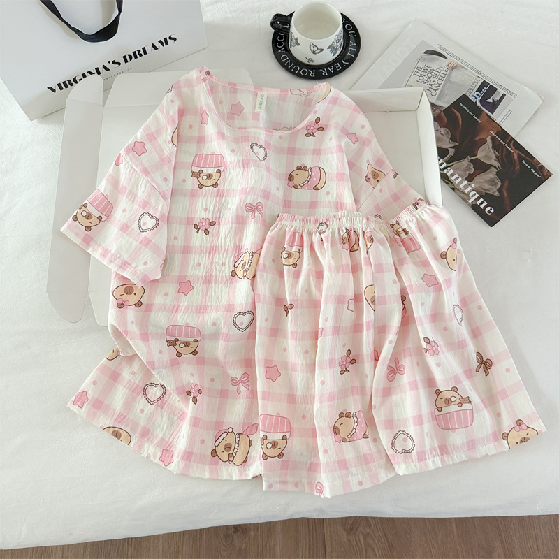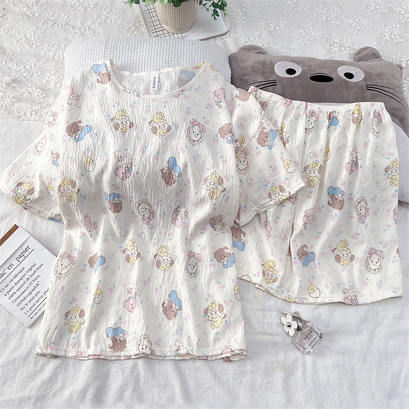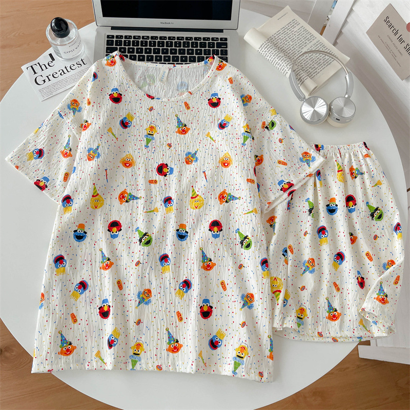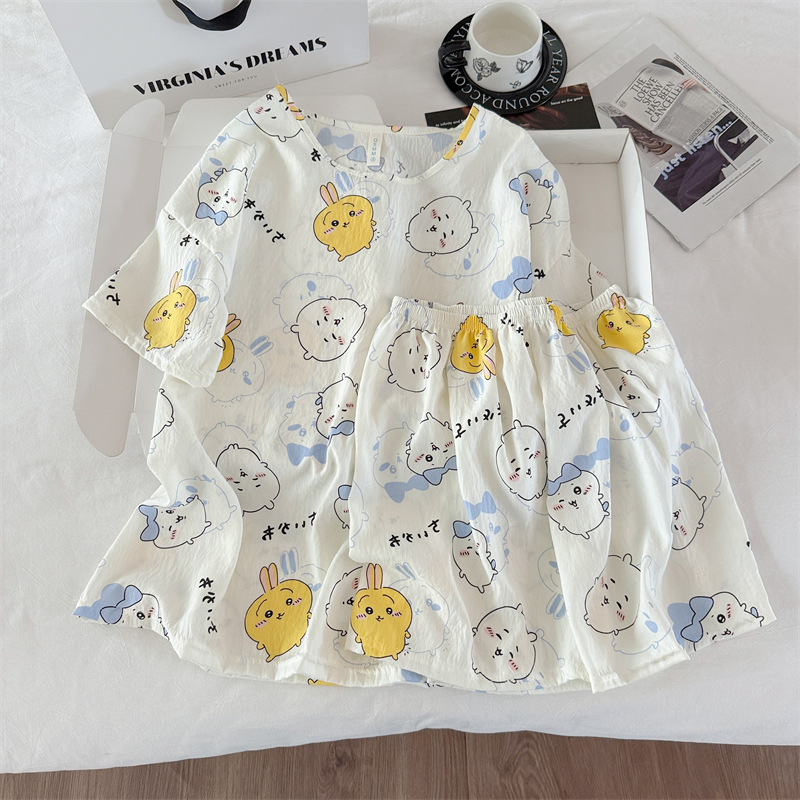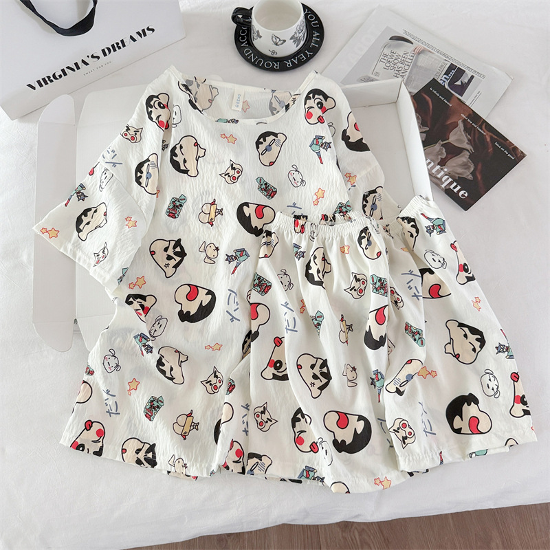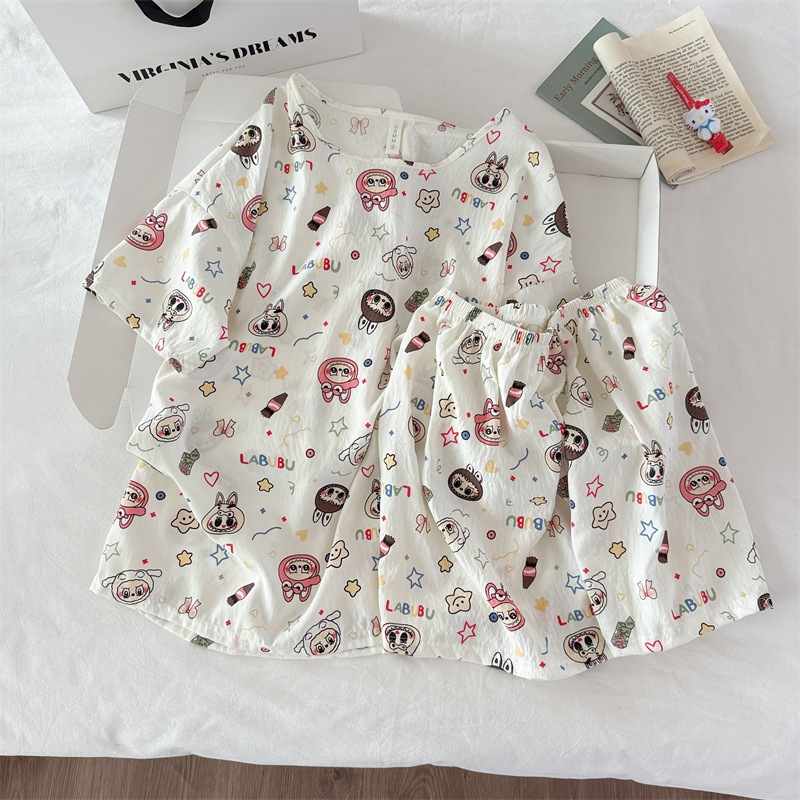 여성용 파자마 공장 직접 판매 Xia Yunduo 면화 만화 달콤하고 귀여운 학생 풀오버 라운드 넥 ins 스타일 대외 무역 판매량