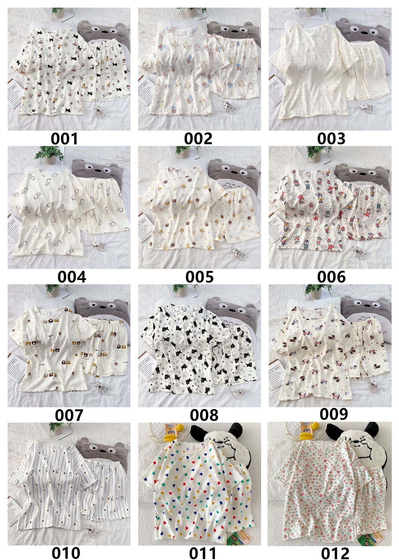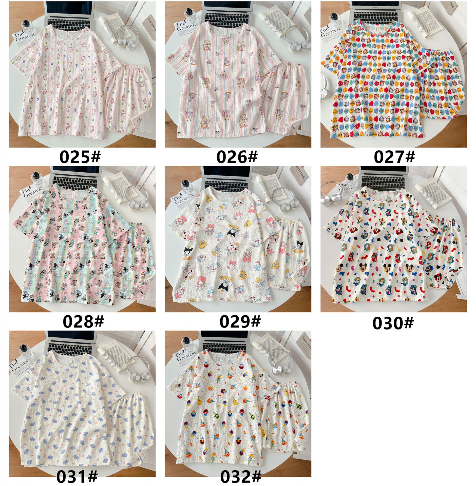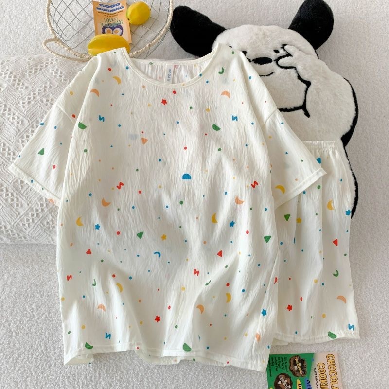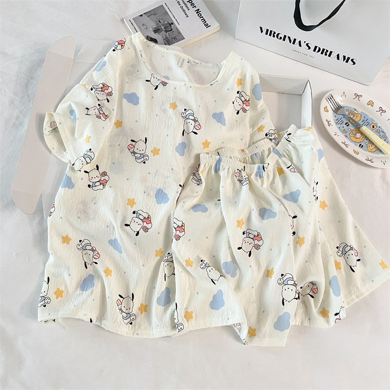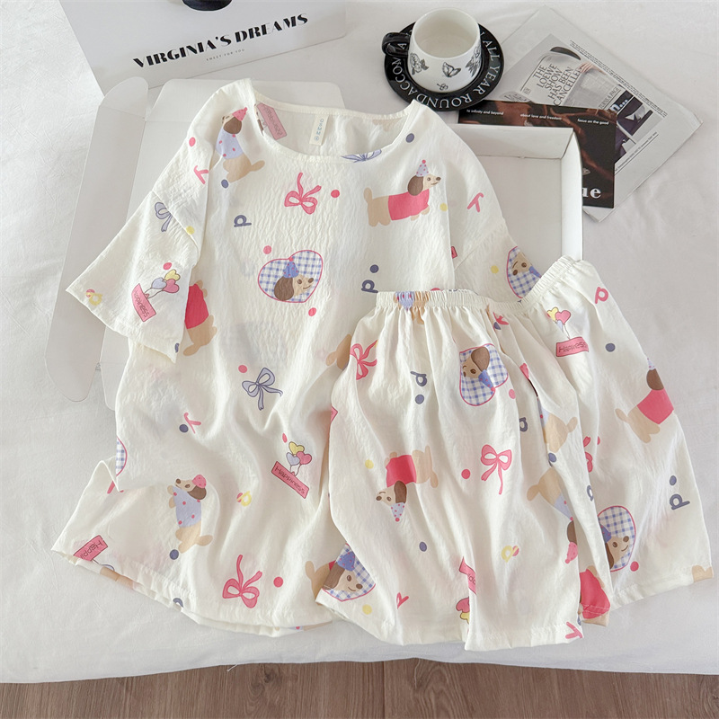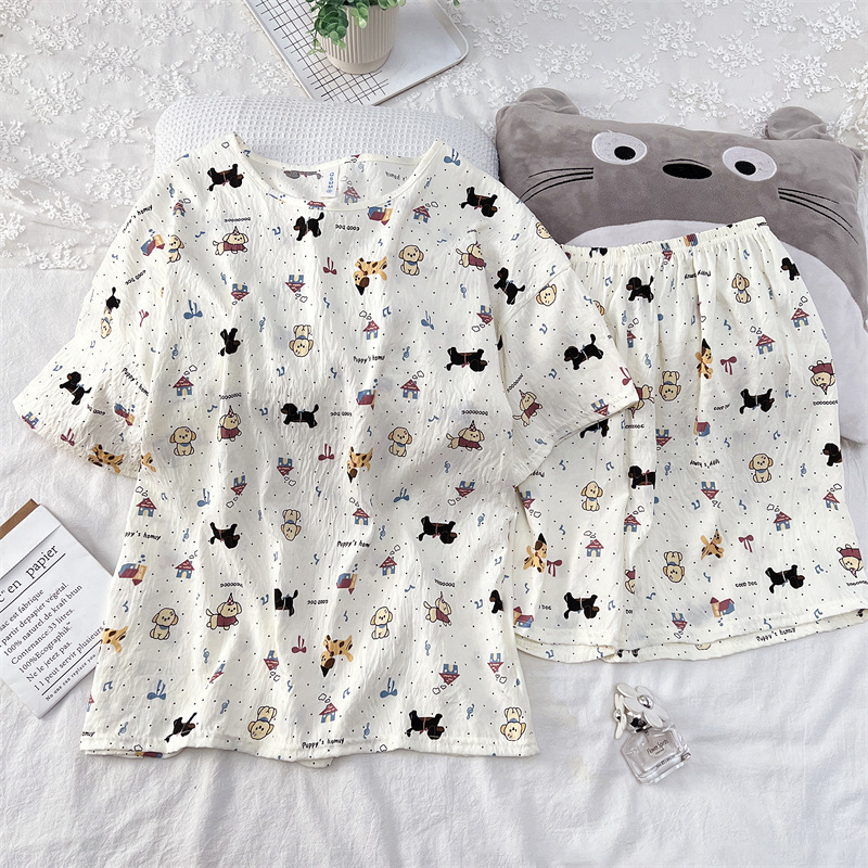 여성용 파자마 공장 직접 판매 Xia Yunduo 면화 만화 달콤하고 귀여운 학생 풀오버 라운드 넥 ins 스타일 대외 무역 판매량