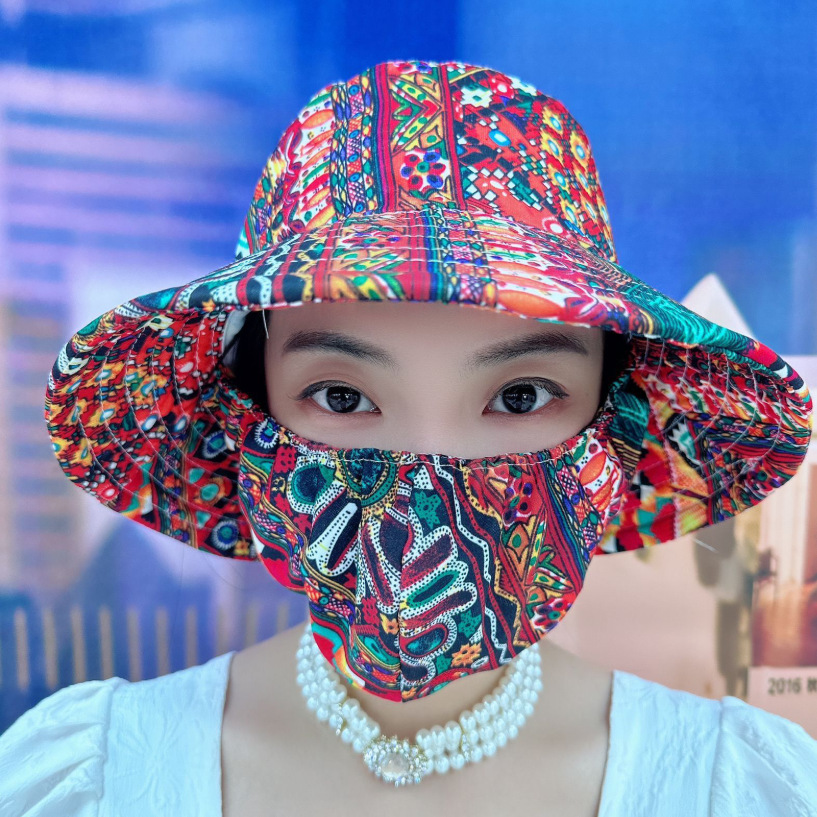 꽃차모자, 햇빛가리개, 여름 야외여행, 방진, 자외선 차단, 얼굴 전체를 덮는 일체형, 자외선 차단 플랫탑 모자