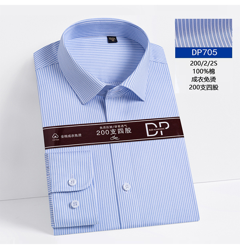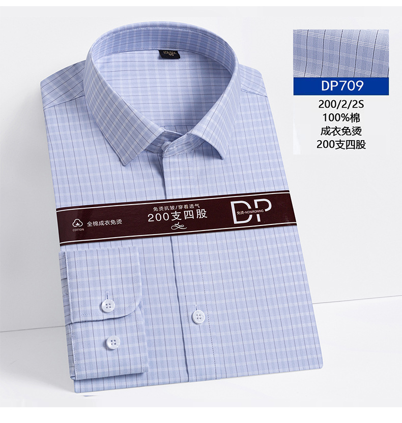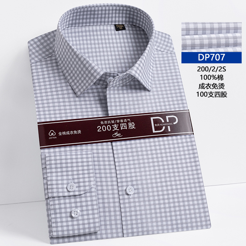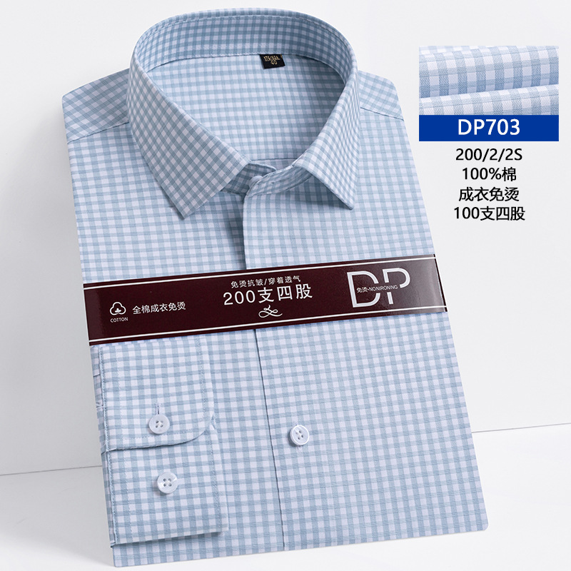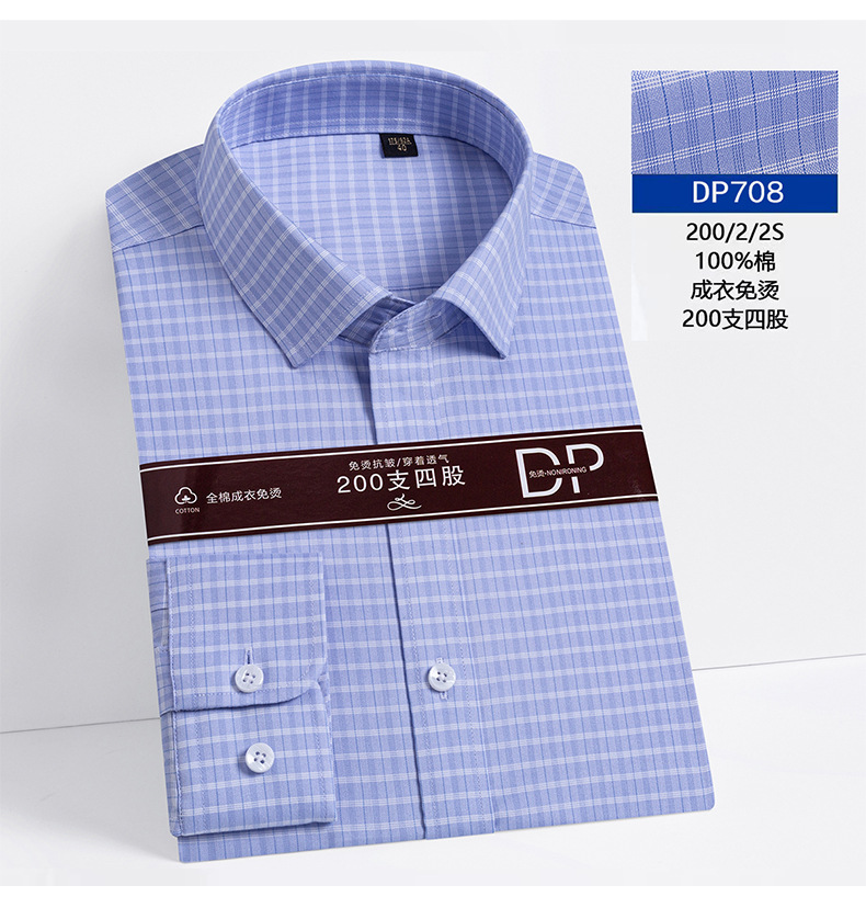 라이트 럭셔리 200 카운트 퓨어 코튼 DP 노 아이론 남성용 긴팔 스트라이프 체크 무늬 셔츠 전문 정장 이지 케어 셔츠스토어 가기