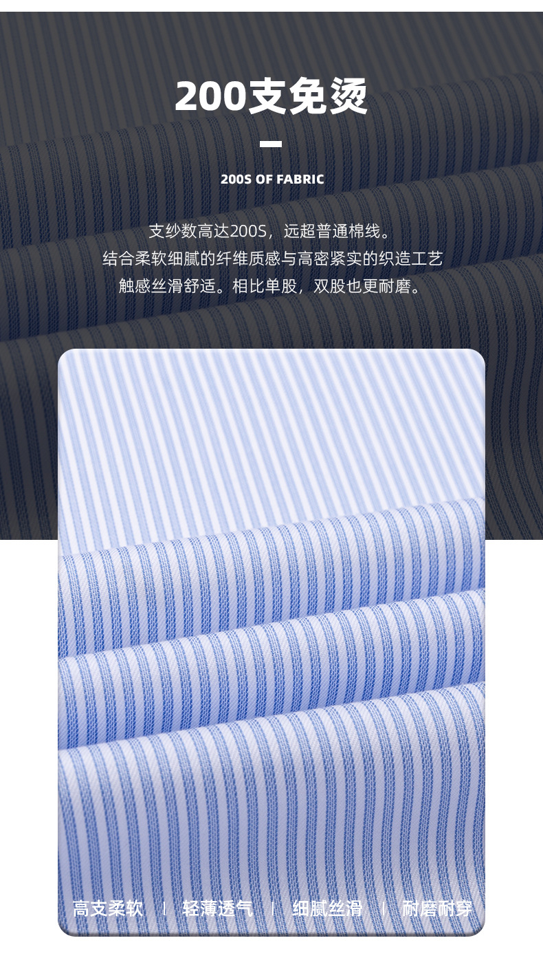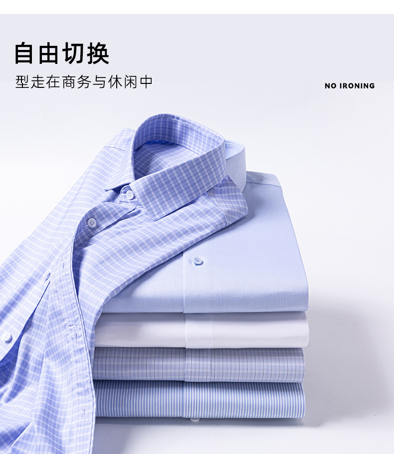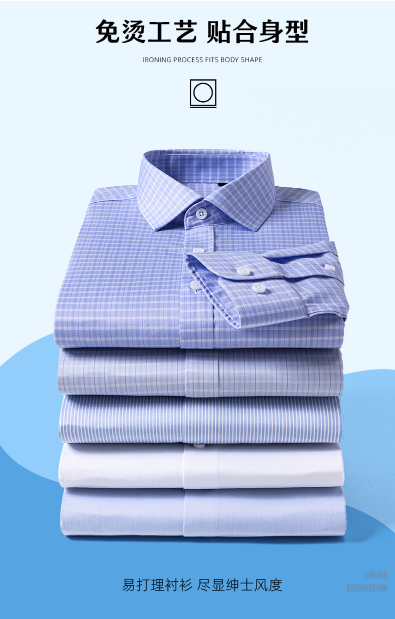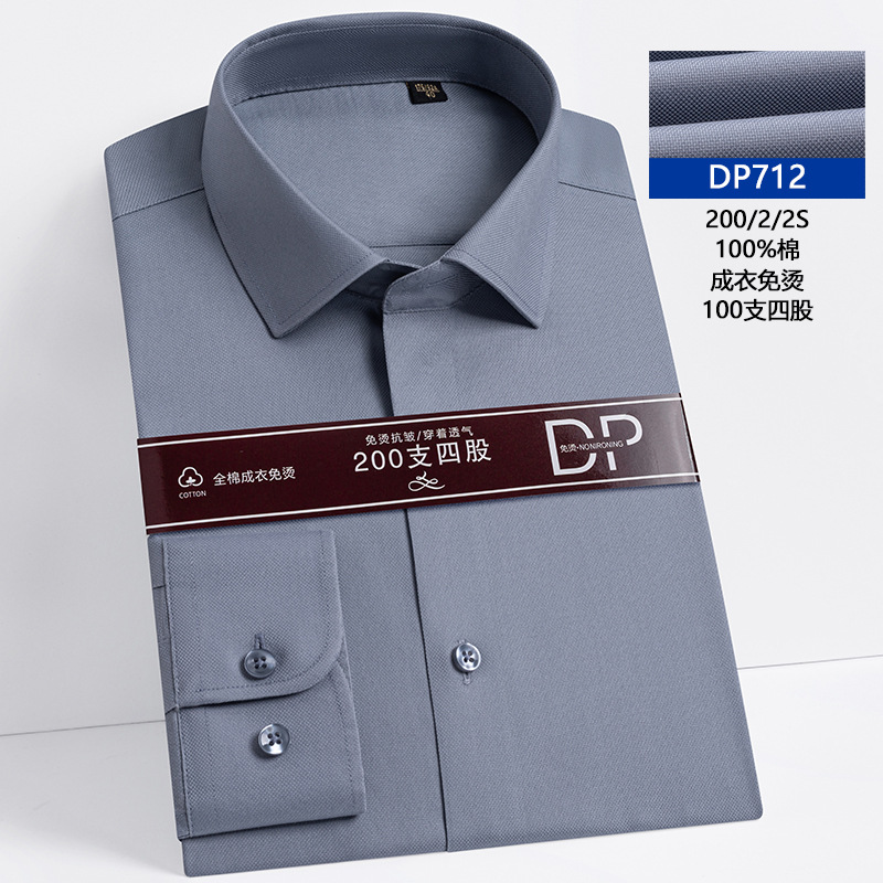 라이트 럭셔리 200 카운트 퓨어 코튼 DP 노 아이론 남성용 긴팔 스트라이프 체크 무늬 셔츠 전문 정장 이지 케어 셔츠스토어 가기