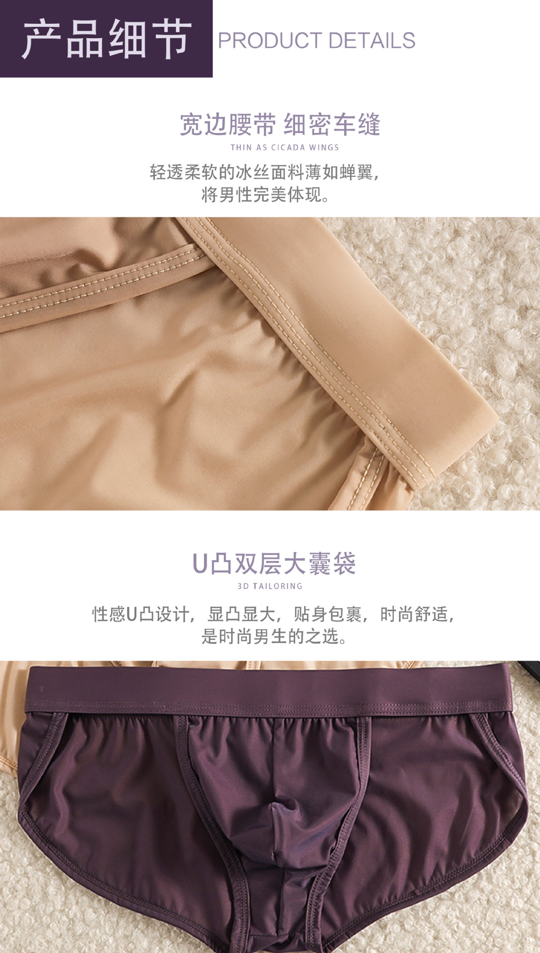 하이컷 속옷 남성용 아이스 실크 팬티 남성용 섹시한 청소년 스포츠 여름 소년 속옷 남성용 도매