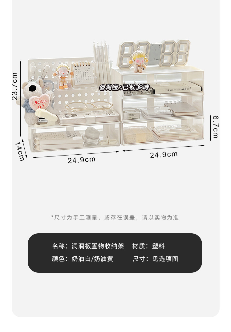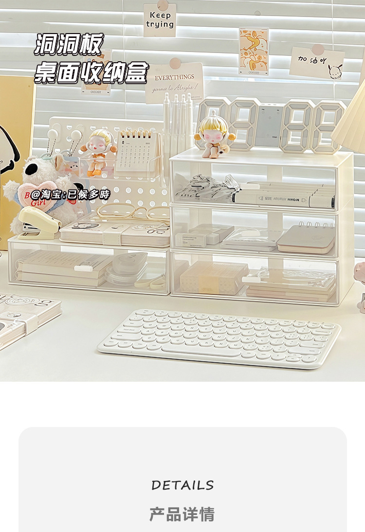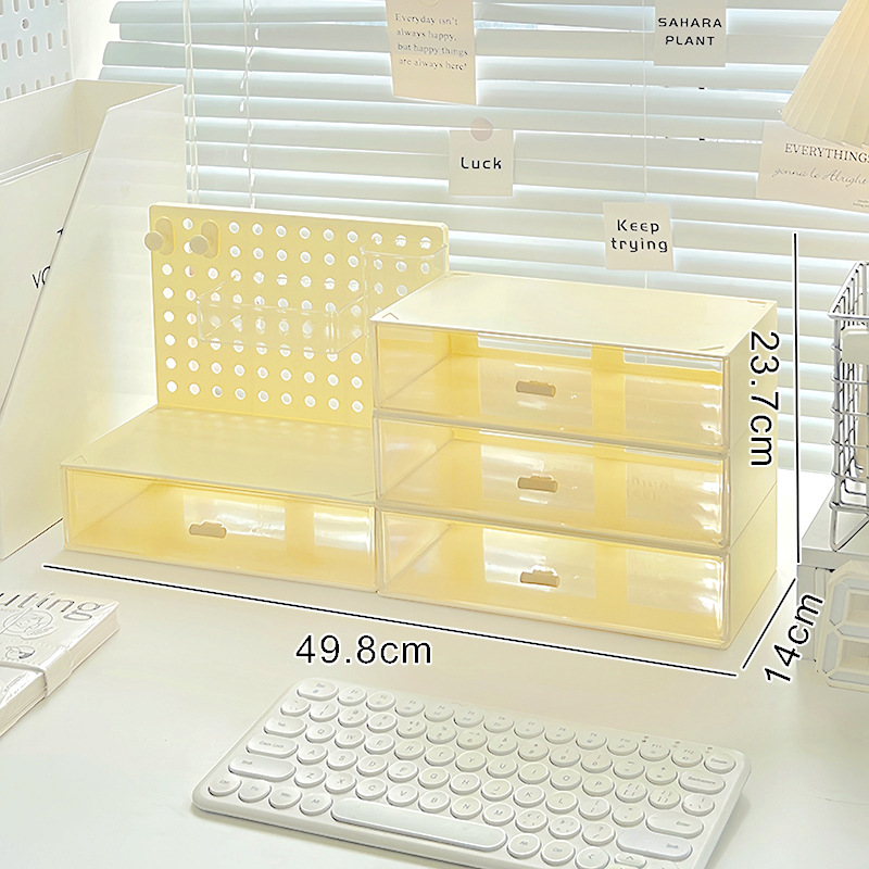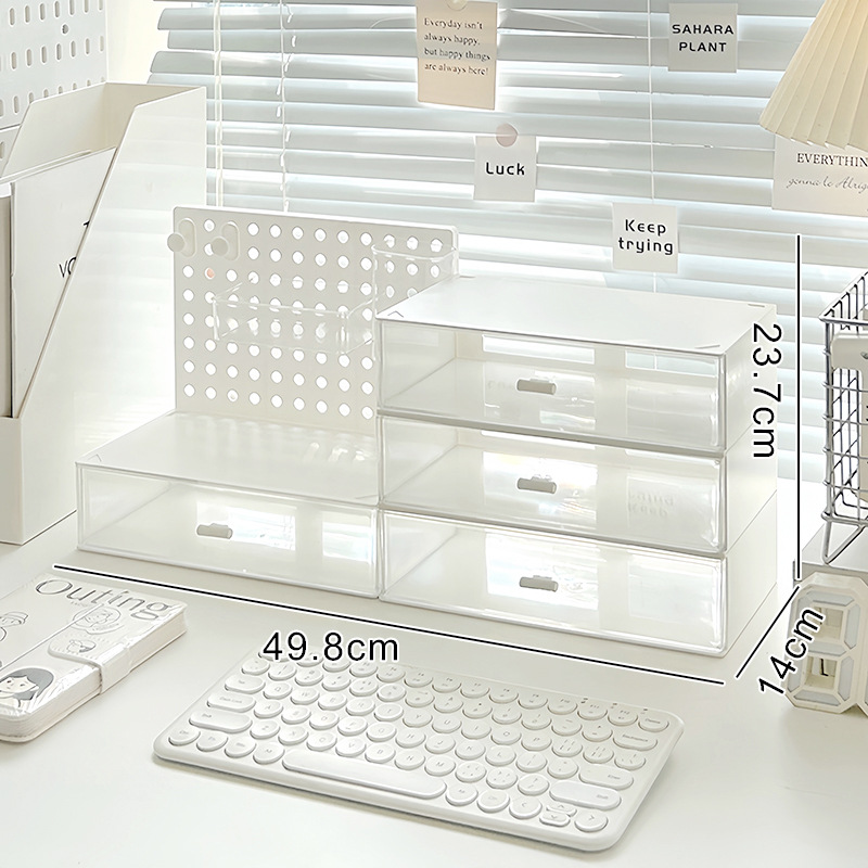 • 크림 홀 보드 + 3단 서랍 상자 [4개 세트]