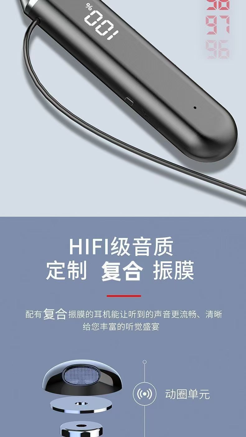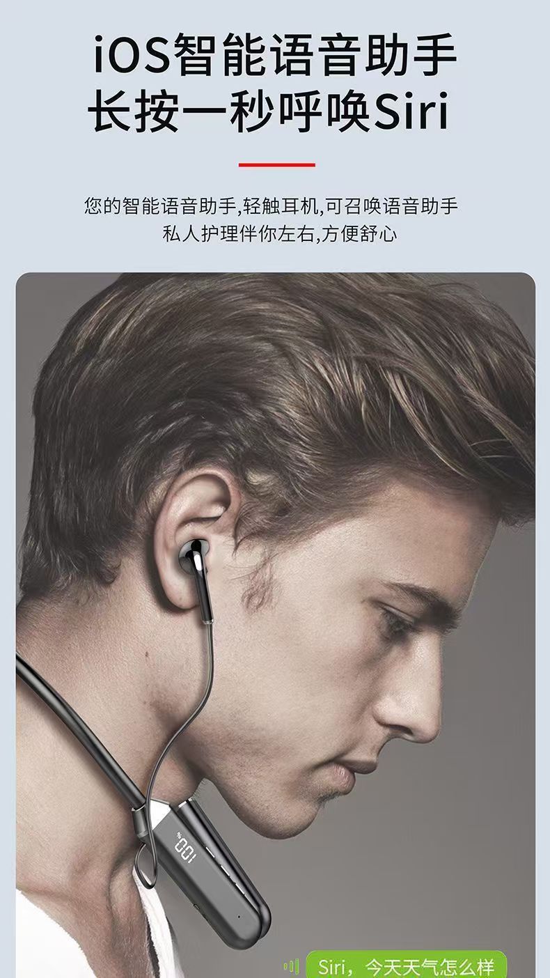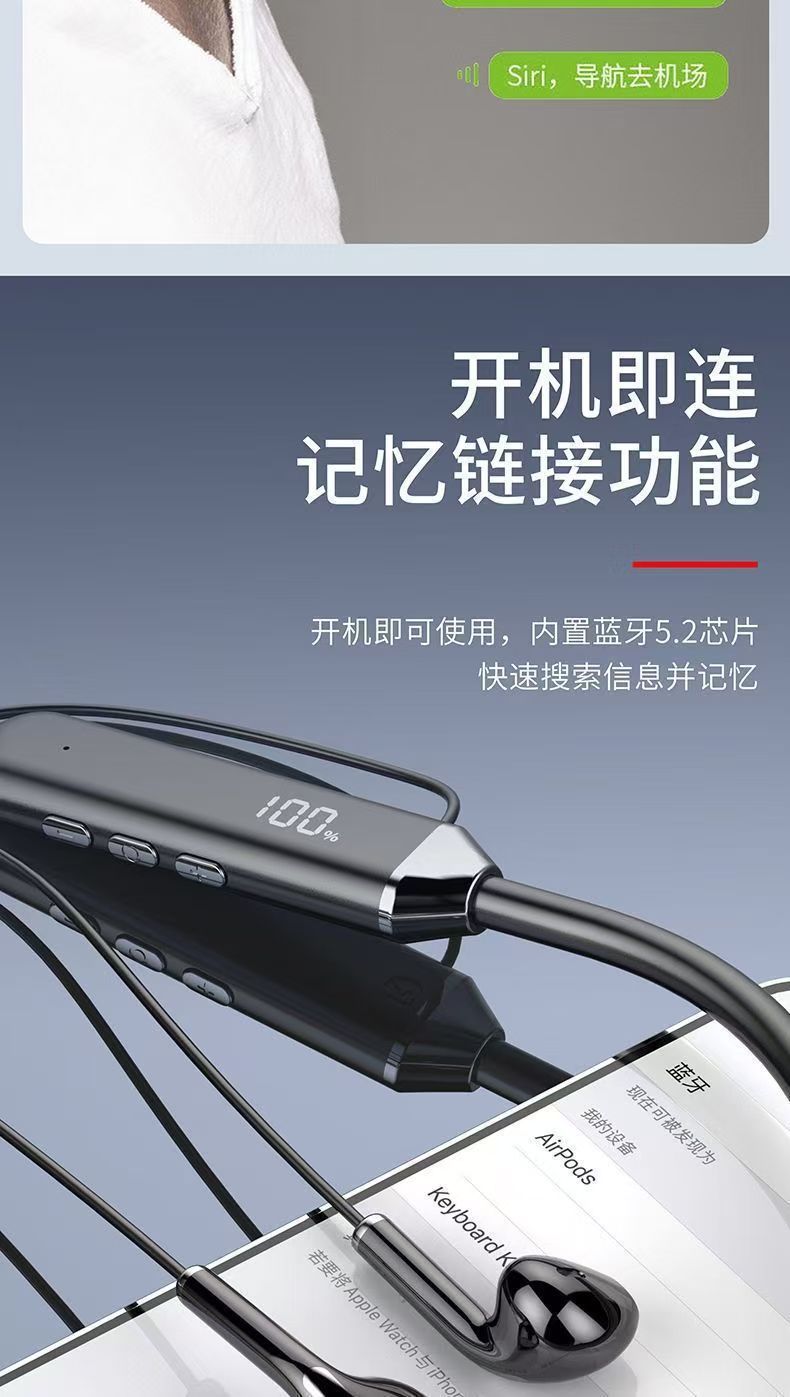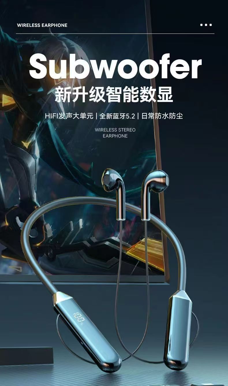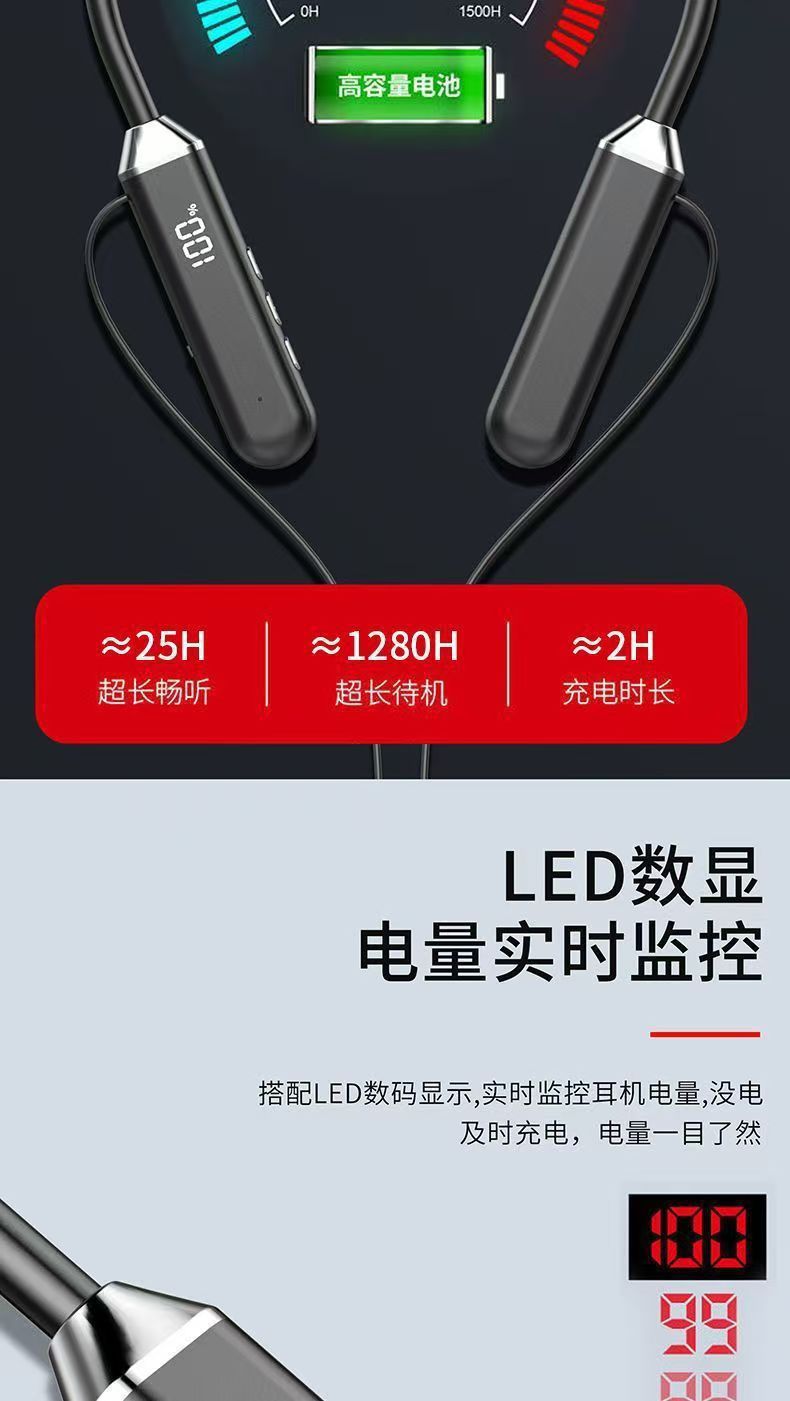 국경을 넘는 디지털 디스플레이 무선 블루투스 이어폰, 스포츠용, 초장시간 배터리, 게임 및 e스포츠용, 넥밴드형, 소음 감소, 범용, 야외 스포츠용