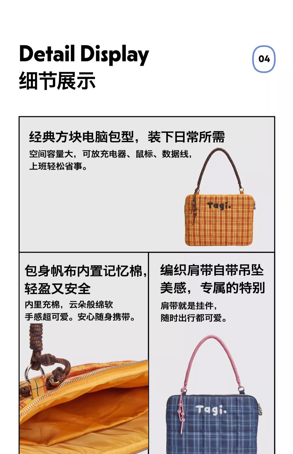 Spot Tagi 짠 작은 베개 자수 구슬 휴대용 어깨 낙하 방지 및 충격 방지 컴퓨터 가방 노트북 가방 폴리에스터스토어 가기