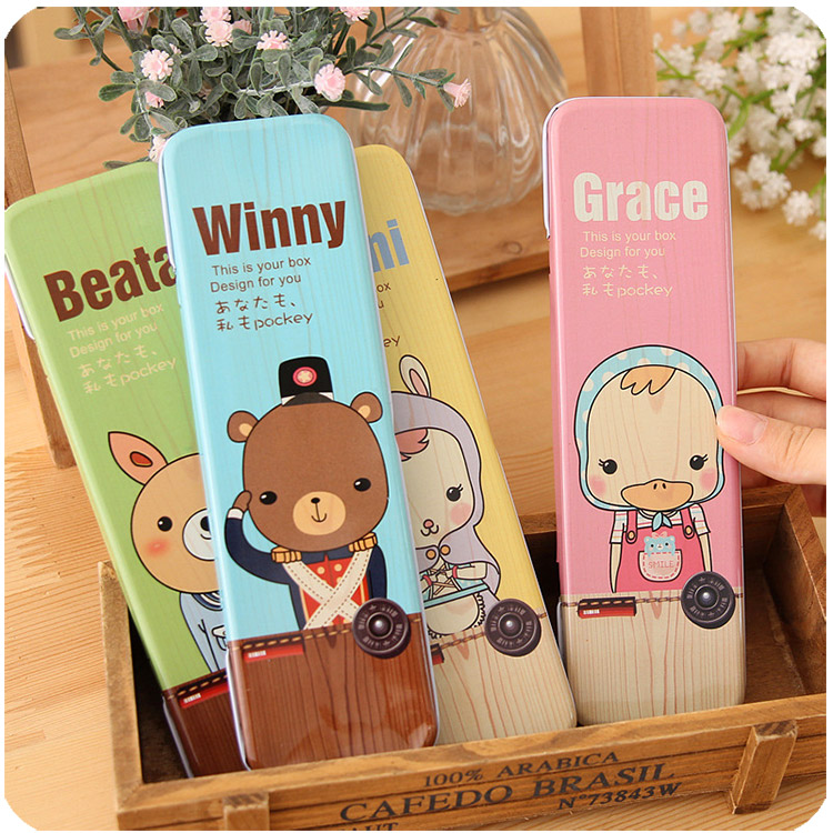 • 연한 갈색 만화 동물 필통 4개