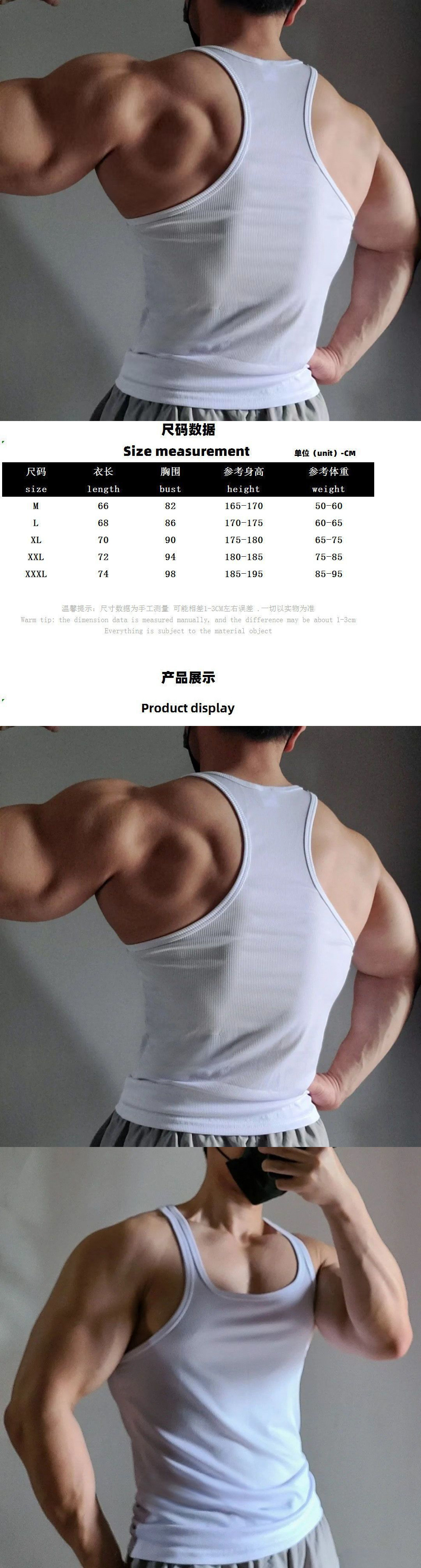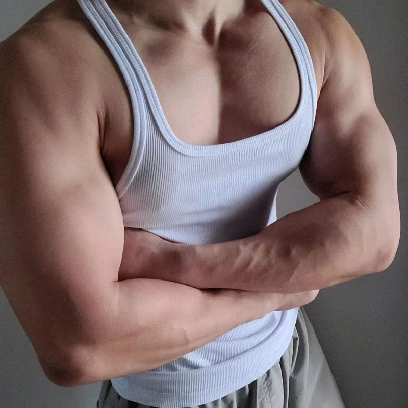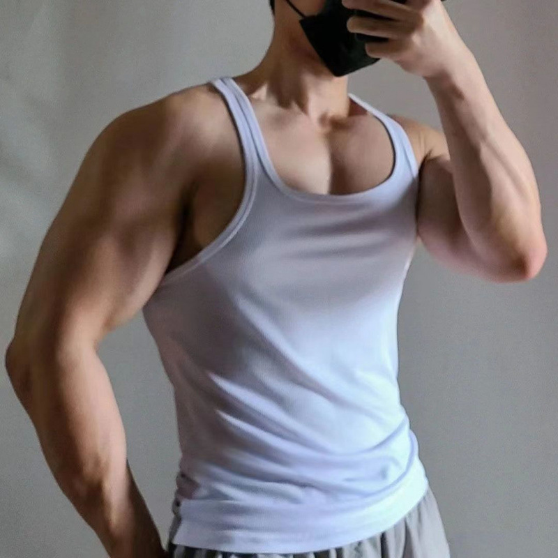 남성용 아메리칸 스레드 스퀘어 넥 화이트 조끼, 고탄성 슬림 스포츠 피트니스 트레이닝 땀 흡수 통기성 슬링