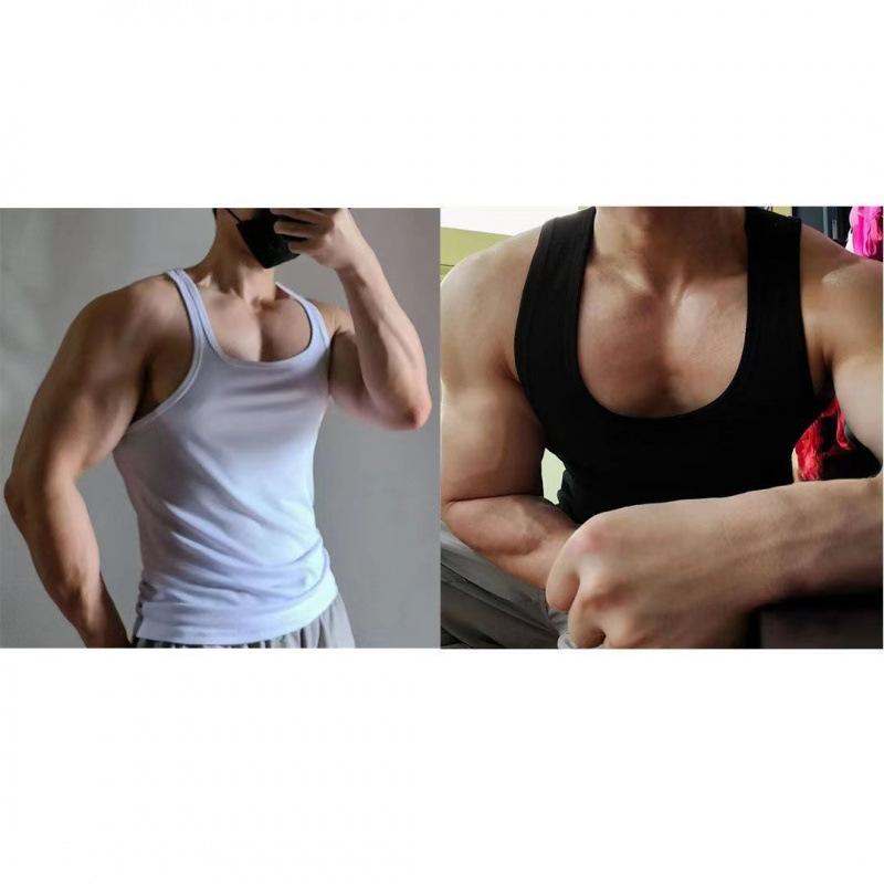 남성용 아메리칸 스레드 스퀘어 넥 화이트 조끼, 고탄성 슬림 스포츠 피트니스 트레이닝 땀 흡수 통기성 슬링스토어 가기