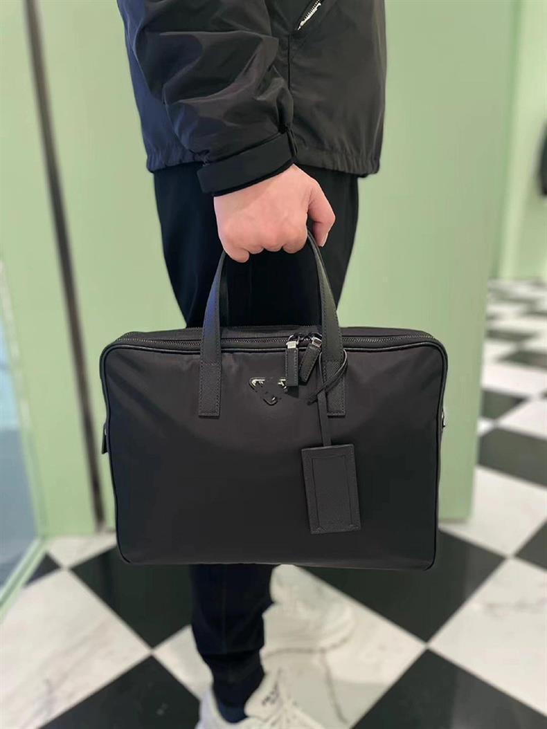 P 남성용 서류 가방 나일론 숄더 크로스 바디 핸드백 컴퓨터 가방 2VE368 오피스 핸드백 문서 가방스토어 가기