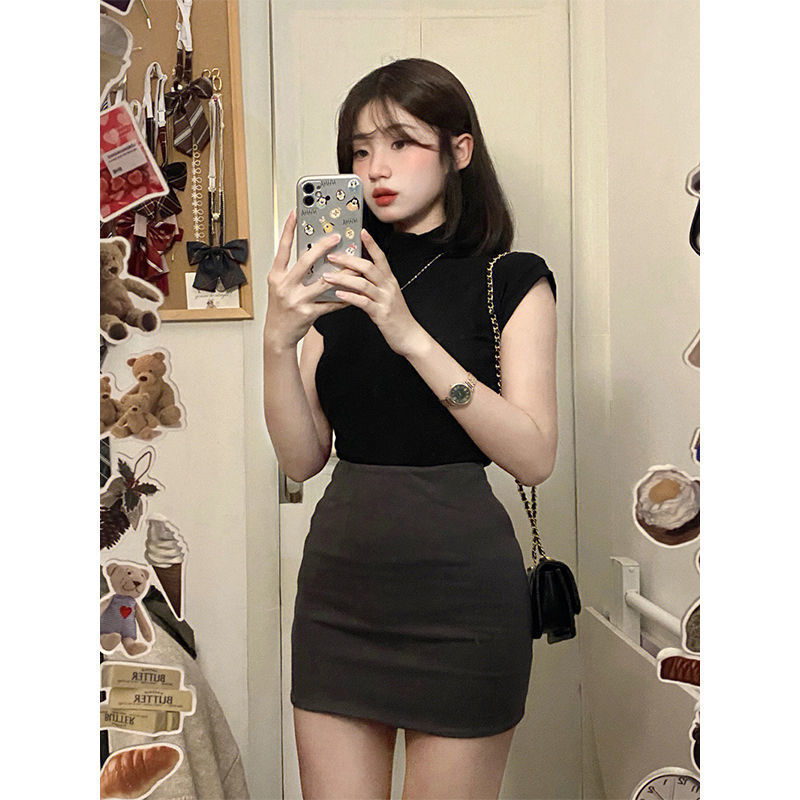 [1+1] 섹시힙허깅스커트 하이웨이스트 스트레치 원스텝스커트 숏스커트 힙커버 블랙 미니스커트