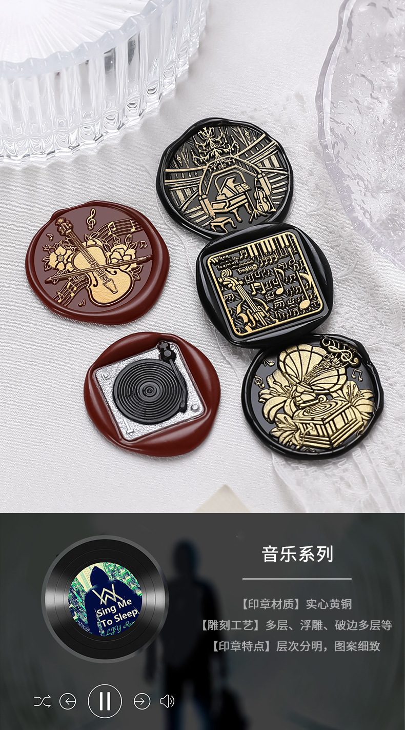 음악 선물 시리즈 Suidis 화염 페인트 씰 바이올린 솔리드 조각 황동 씰 헤드 도매스토어 가기