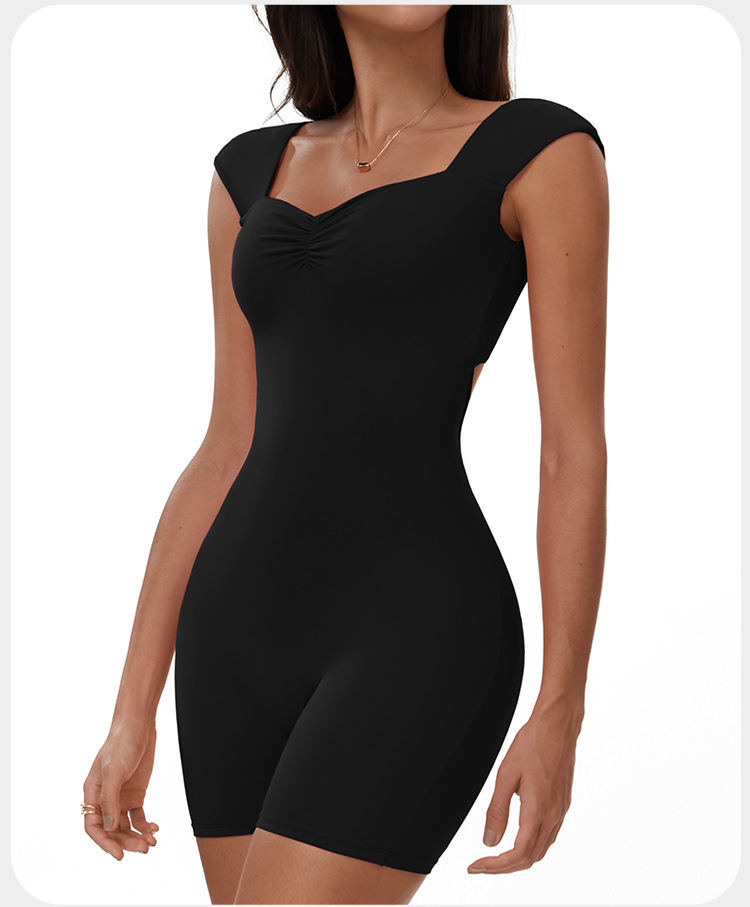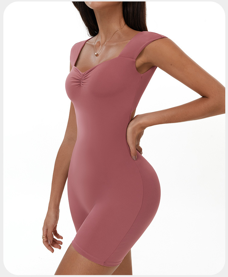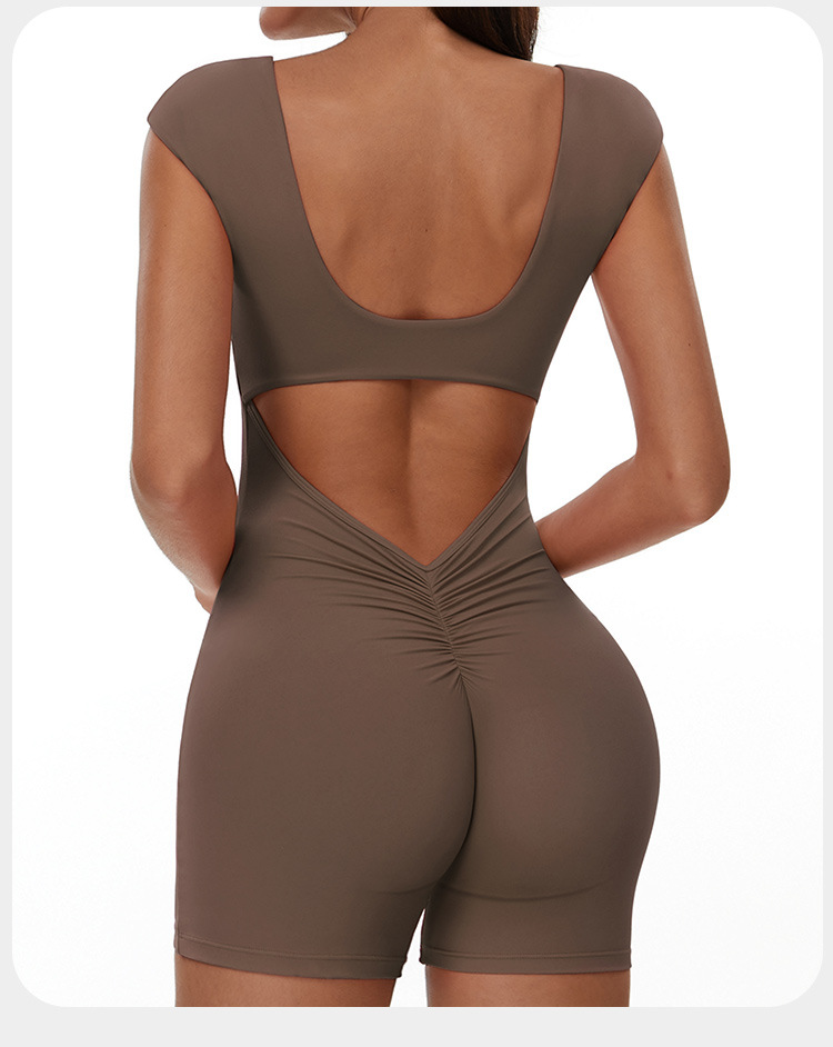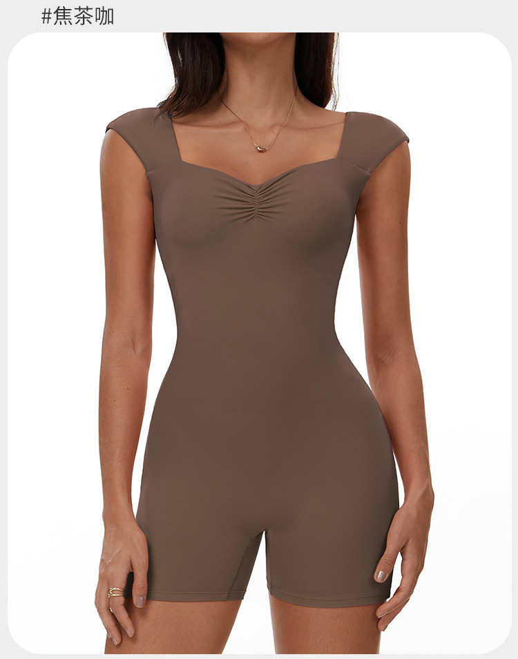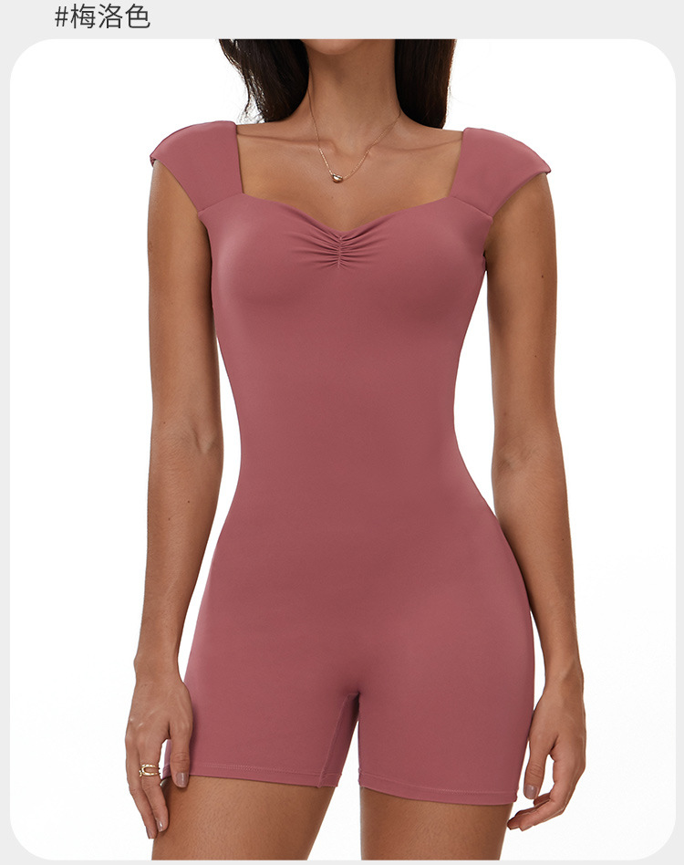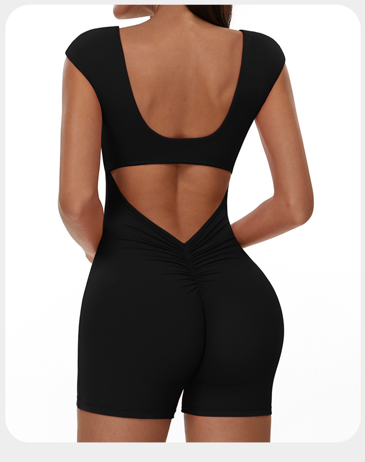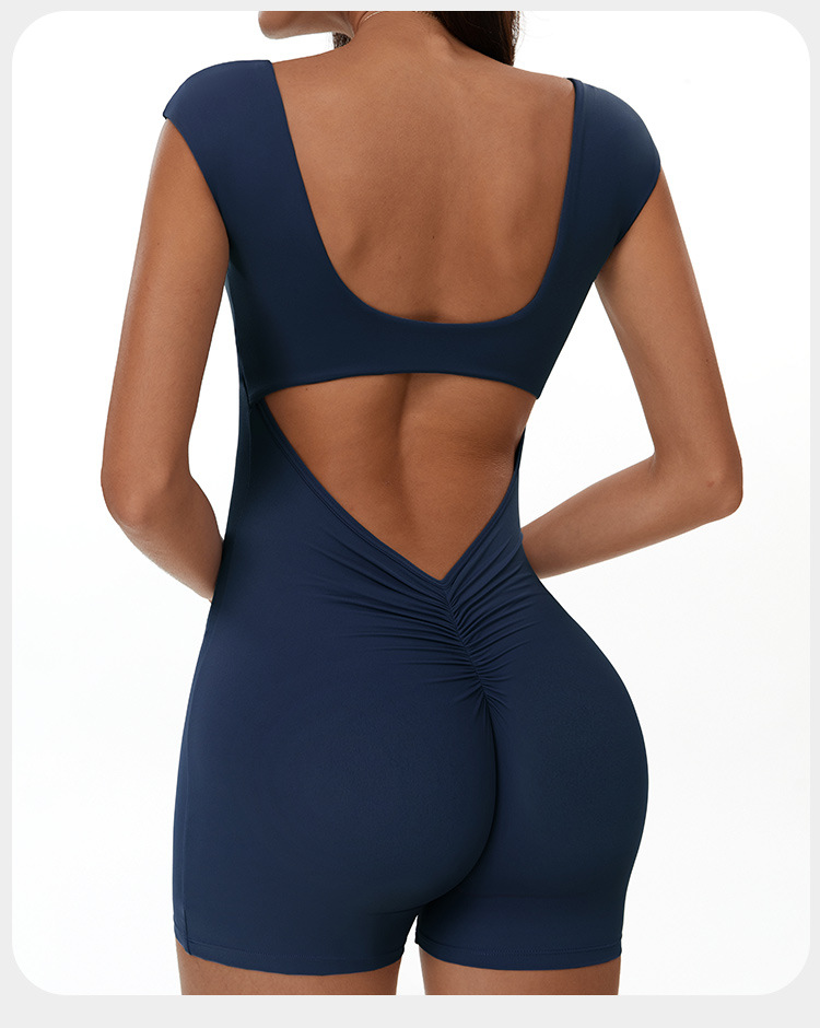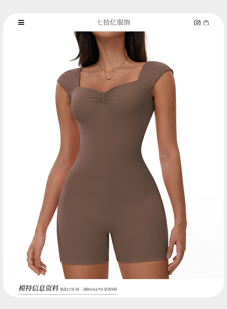 크로스보더 플리츠 힙 점프수트, 타이트한 복부 조절 요가 점프수트, 스포츠 피트니스 반팔 점프수트 여름 3105
