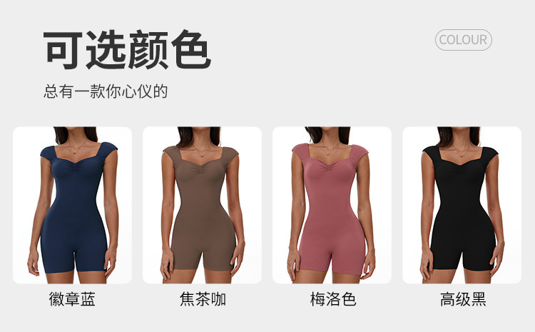 크로스보더 플리츠 힙 점프수트, 타이트한 복부 조절 요가 점프수트, 스포츠 피트니스 반팔 점프수트 여름 3105스토어 가기