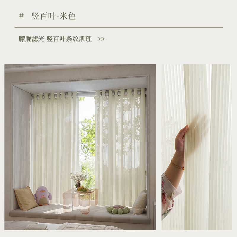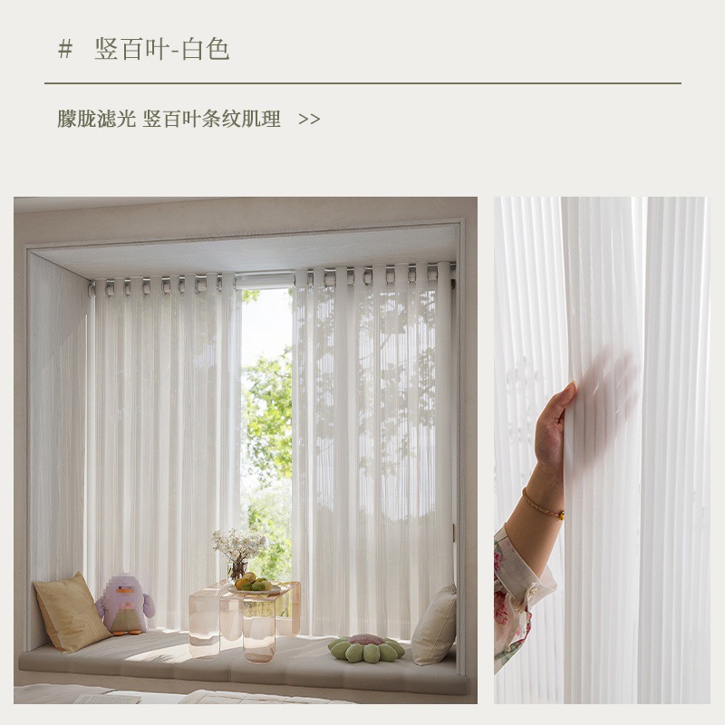 커튼은 구멍을 뚫을 필요가 없으며 인터넷 연예인 수직 블라인드 거즈 커튼을 설치할 수 있습니다. 침실 베드벤치 창 투명 및 불투명 흰색 거즈 세트입니다.스토어 가기