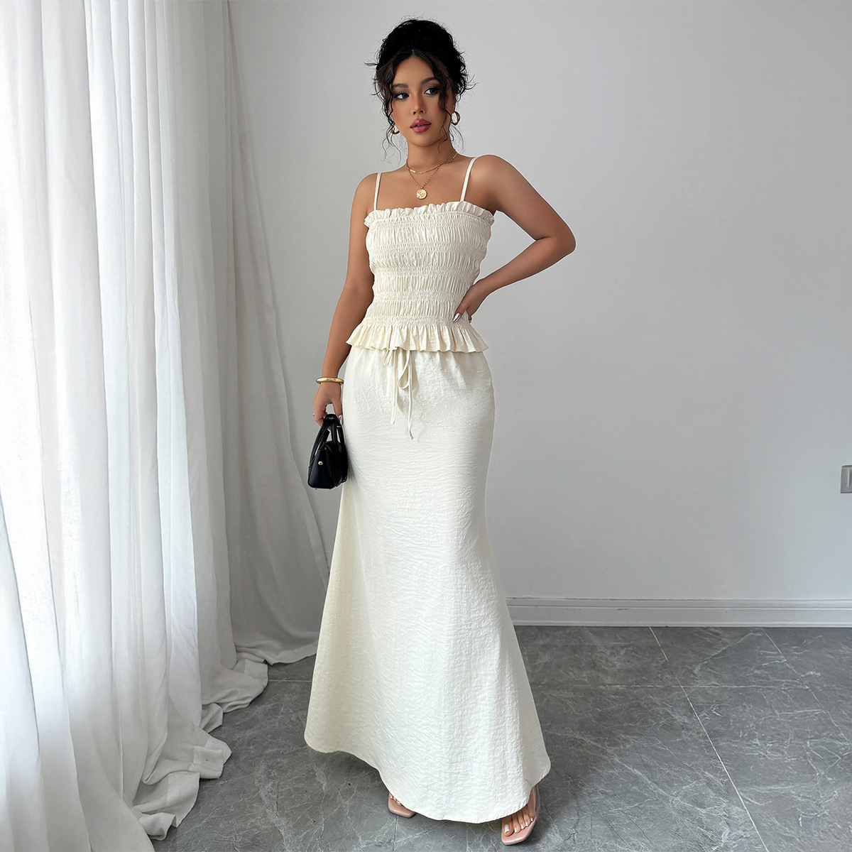 국경 간 유럽과 미국 스타일의 우아한 작은 캐미솔 힙 스커트 정장 여성 2025 봄 여름 Amazon 독립 스테이션스토어 가기