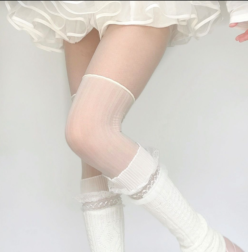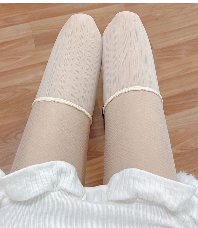Yufeng 다크 세로 줄무늬 귀 메쉬 스플라이싱 얇은 밀키 화이트 스타킹 블랙 실크 슬리밍 팬티 스타킹 JK스토어 가기