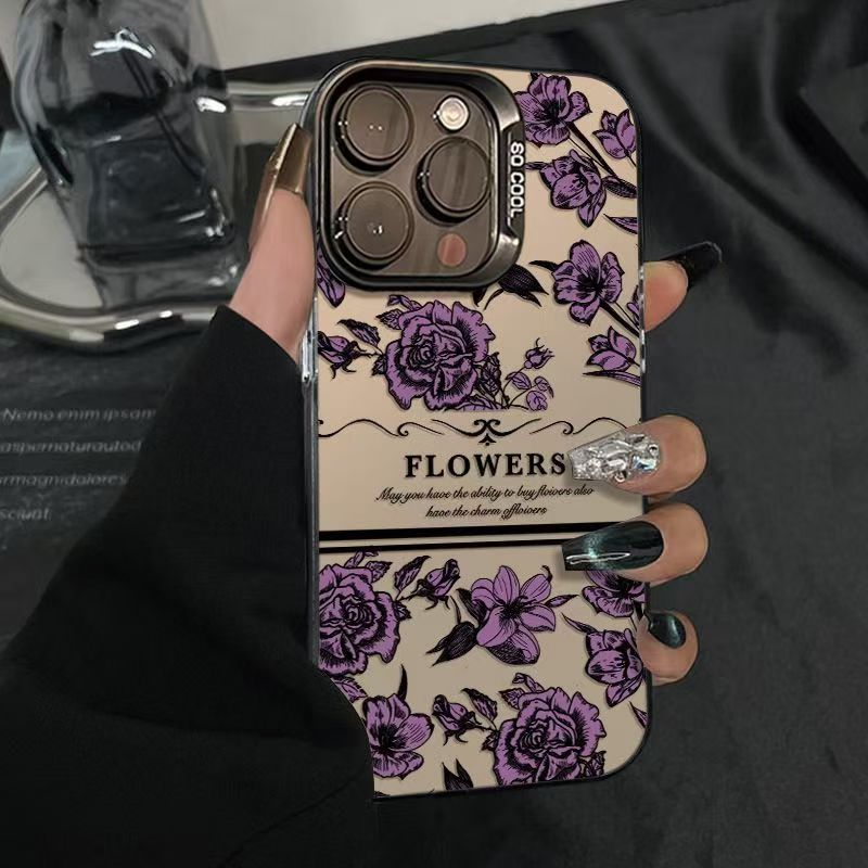 Apple 16/15/14pro 휴대폰 케이스 15promax13/12/11X에 적합한 유럽과 미국의 보라색 장미 컬러 실버 쉘스토어 가기