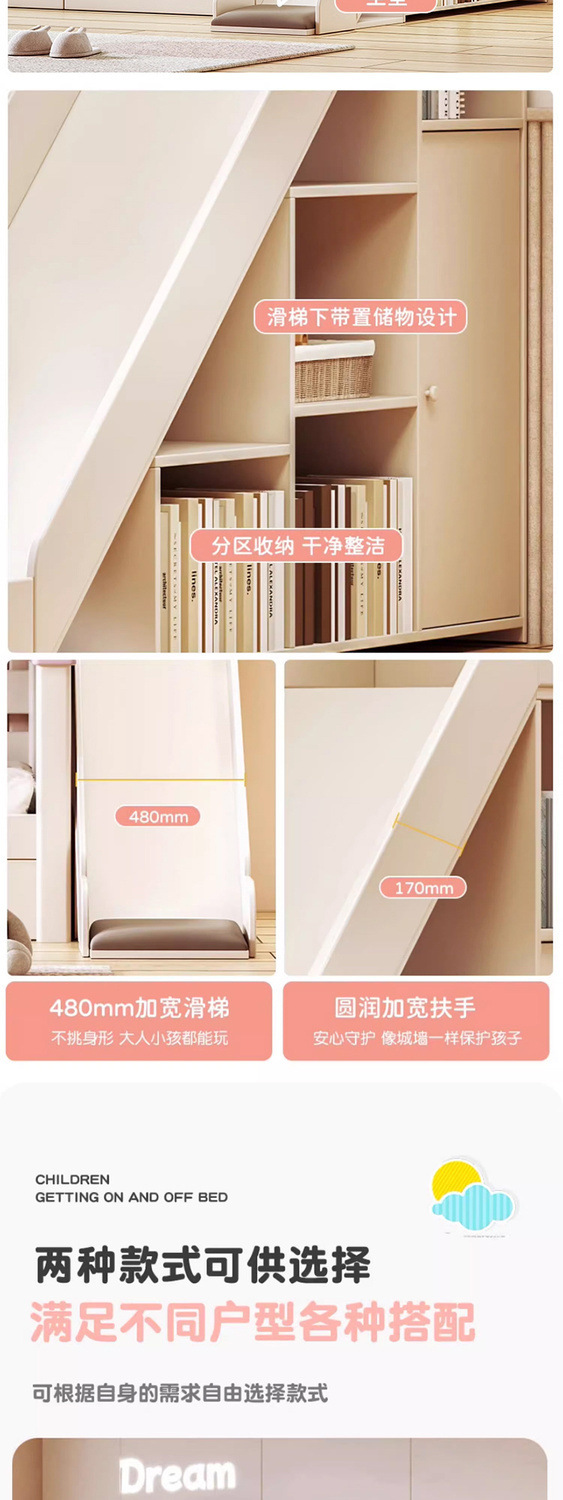 • 사다리 캐비닛 + 슬라이드 + 책장 + 매트리스*2