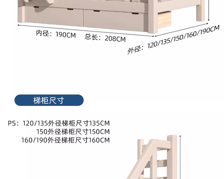 • 사다리 캐비닛 + 더블 서랍 + 매트리스 * 2