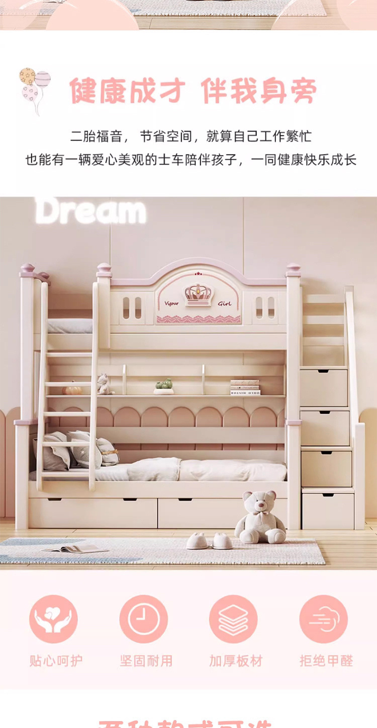 • 사다리 스타일 + 슬라이드 + 책장 + 더블 서랍 + 매트리스*2