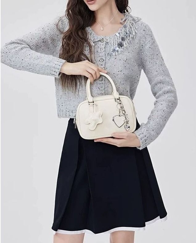 여성을 위한 틈새 디자인 볼링 가방, 귀여운 가을 겨울 새로운 복고풍 핸드백, 싱글 숄더 크로스바디 보스턴 백