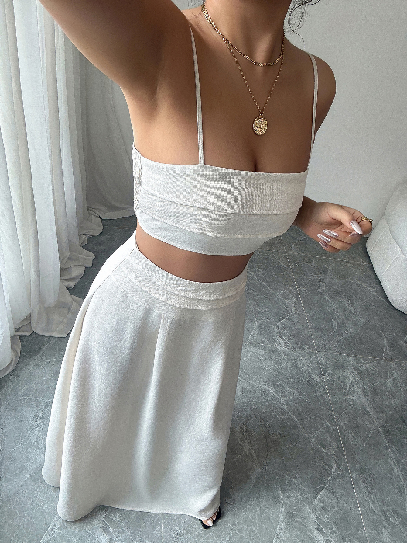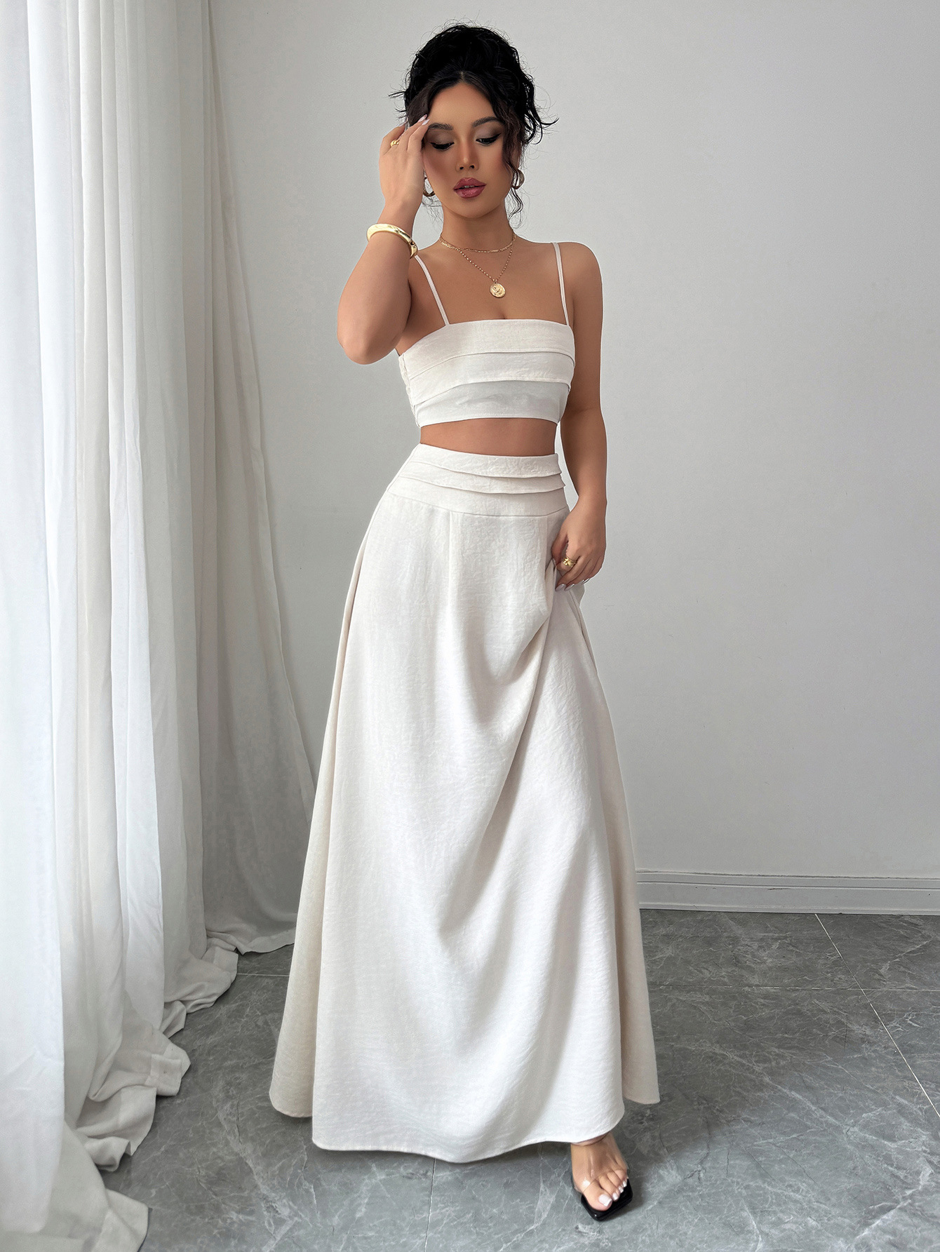 국경 간 유럽과 미국 스타일의 우아한 작은 서스펜더 튜브 탑 스커트 정장 여성 2025 봄 여름 Amazon 독립 스테이션스토어 가기