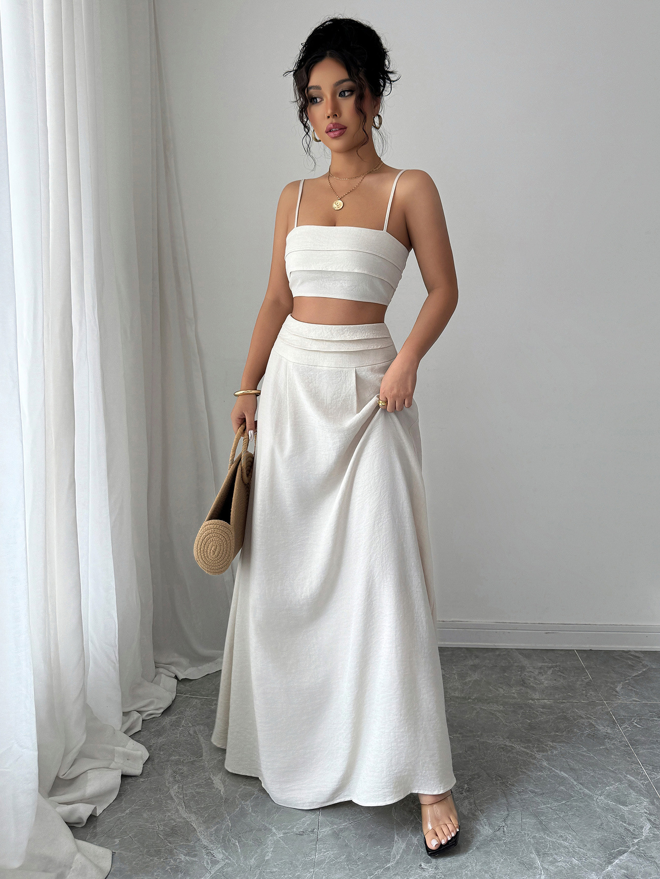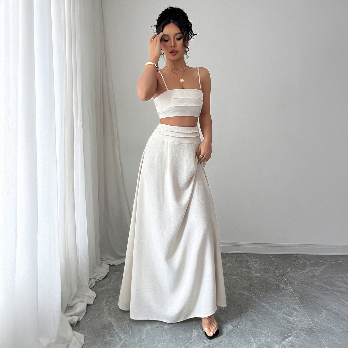 국경 간 유럽과 미국 스타일의 우아한 작은 서스펜더 튜브 탑 스커트 정장 여성 2025 봄 여름 Amazon 독립 스테이션