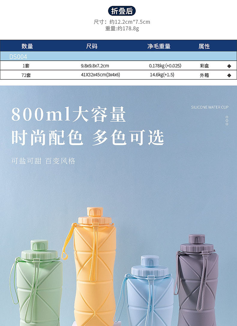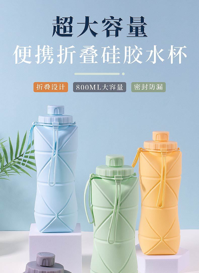 실리콘 접는 물 컵 대용량 800ml 새로운 스포츠 물병 텔레스코픽 야외 여행 휴대용 스포츠 물병스토어 가기
