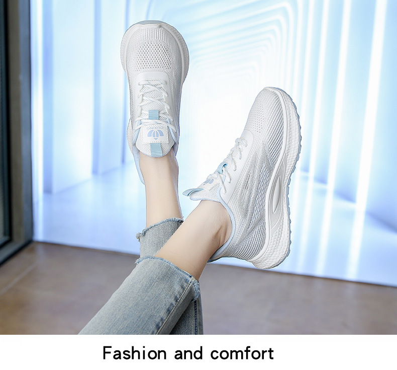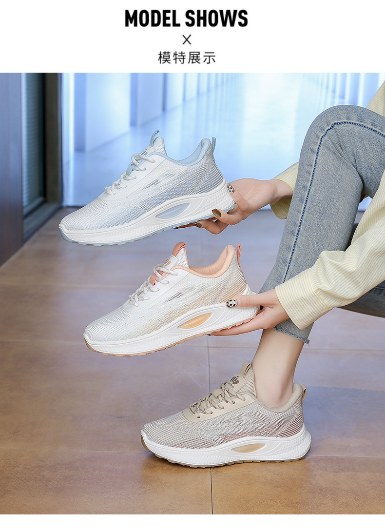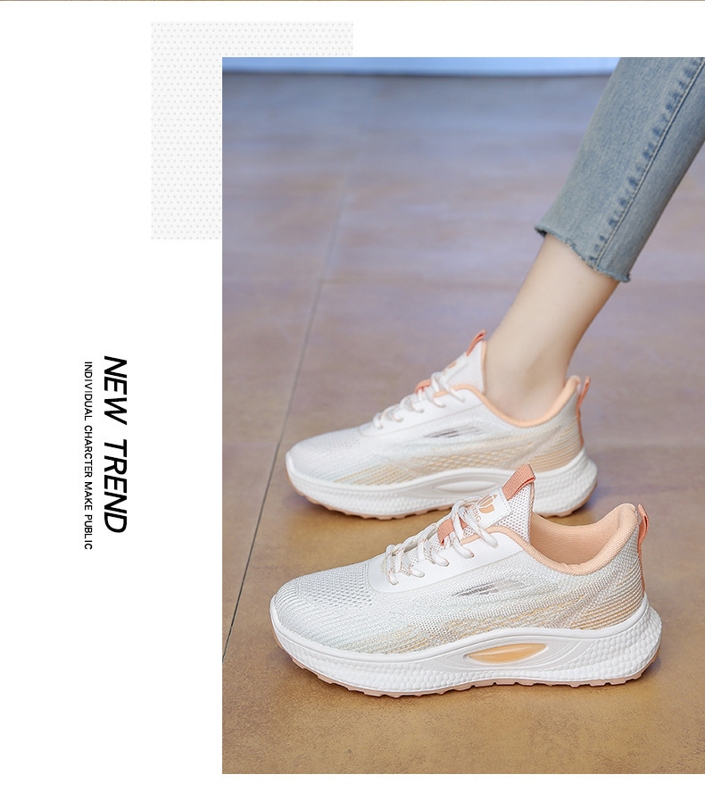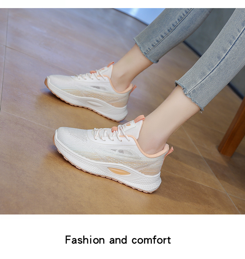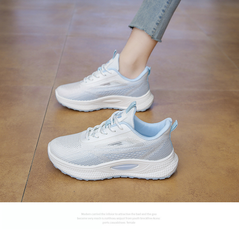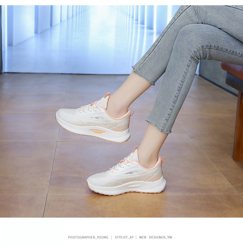 여성 신발 봄 플라이 니트 스포츠 신발 여성 경량 통기성 흰색 신발 간단한 그라데이션 캐주얼 운동화 크로스 보더 드롭 배송