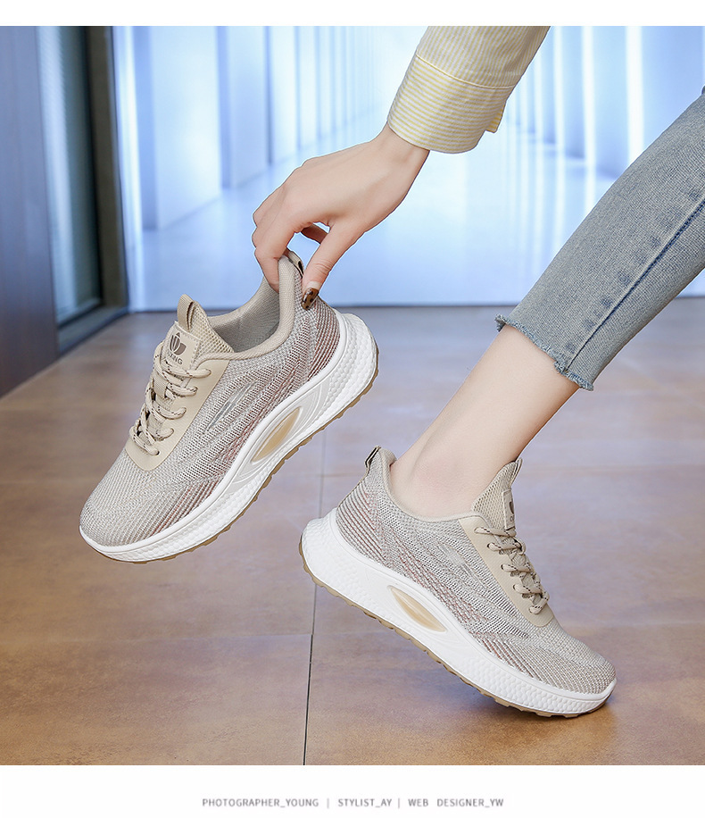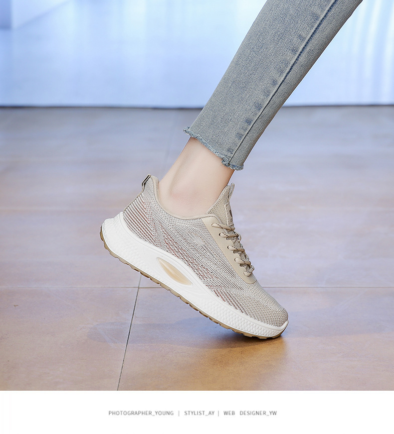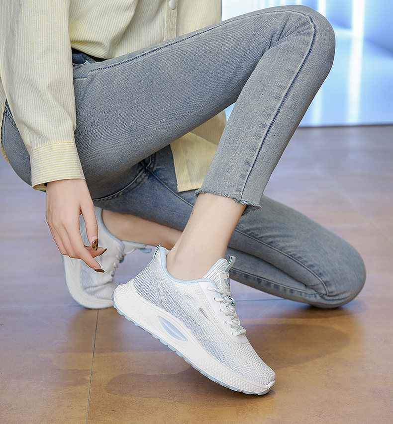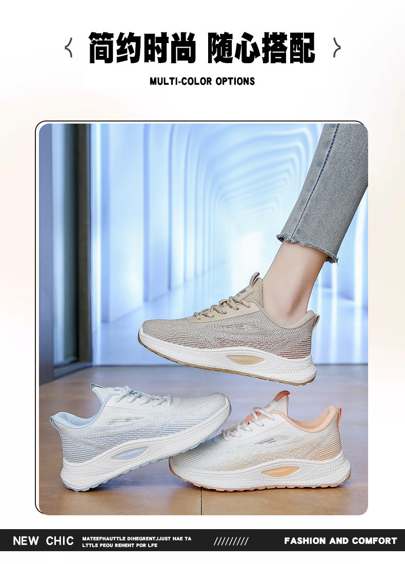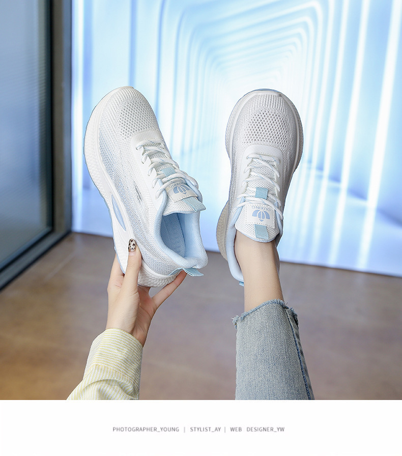 여성 신발 봄 플라이 니트 스포츠 신발 여성 경량 통기성 흰색 신발 간단한 그라데이션 캐주얼 운동화 크로스 보더 드롭 배송