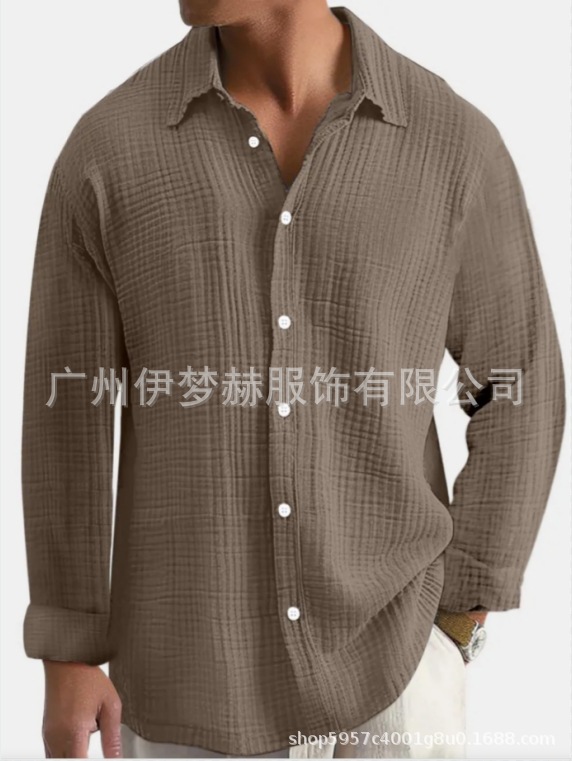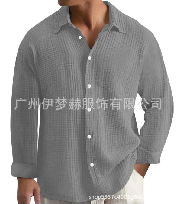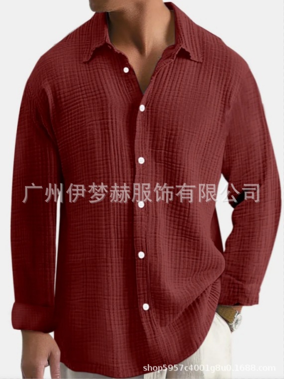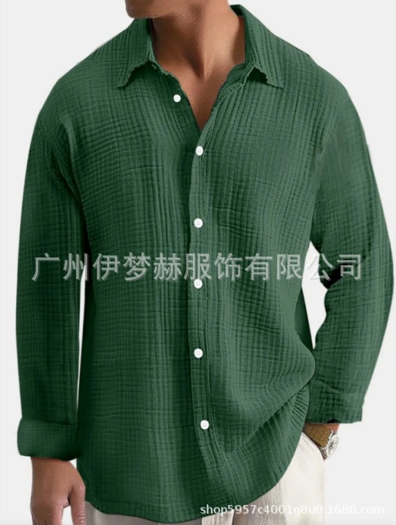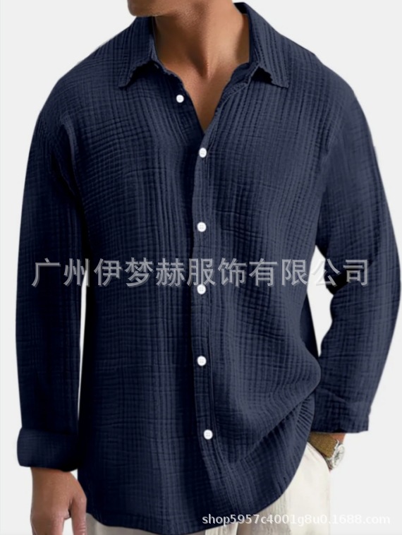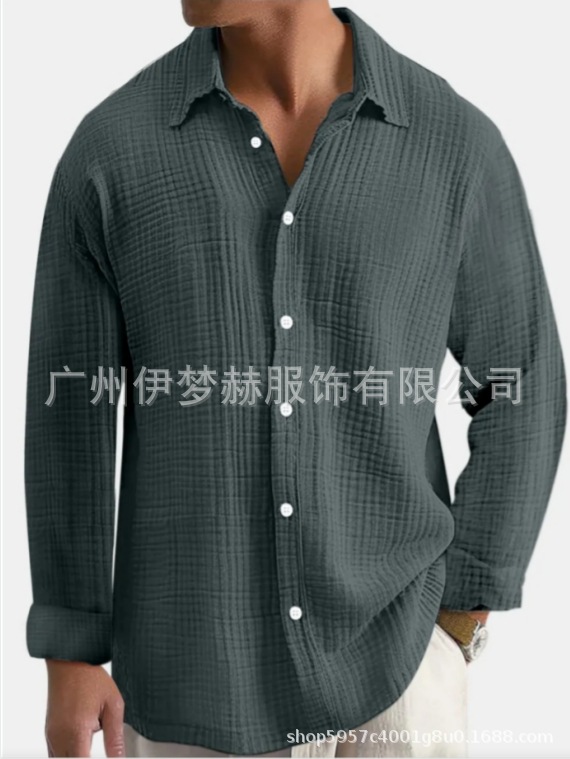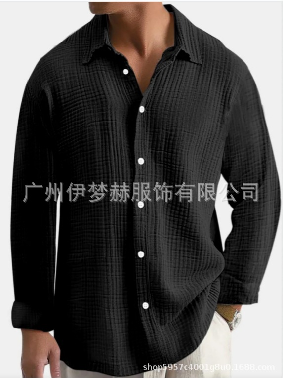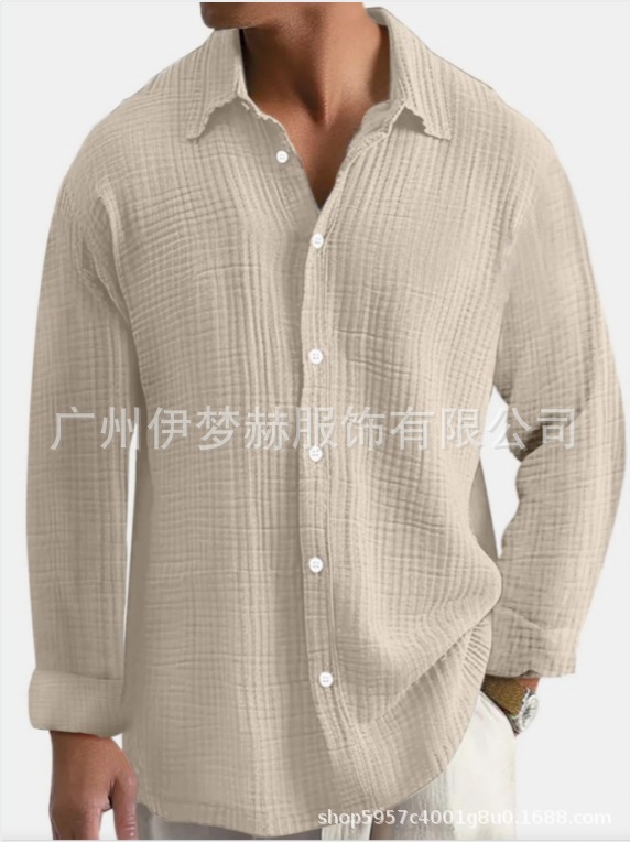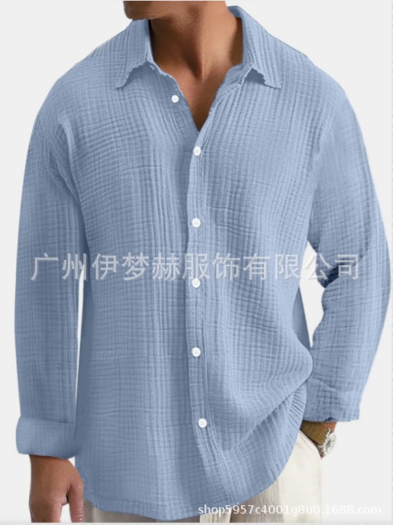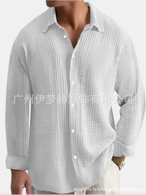 아마존 틱톡 테무 남성용 루즈핏 캐주얼 순면 주름무늬 빅사이즈 긴팔 셔츠 캐주얼하고 다용도