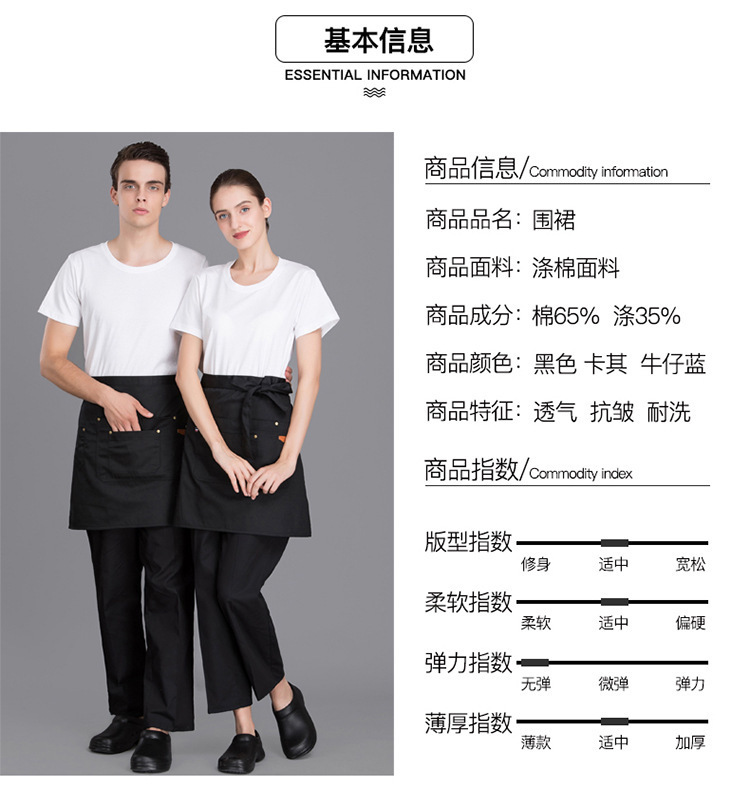 레스토랑, 바, 베이커리, 카페, 웨이터, 전골, 레스토랑 작업 앞치마를 위한 맞춤형 짧은 반길이 앞치마스토어 가기