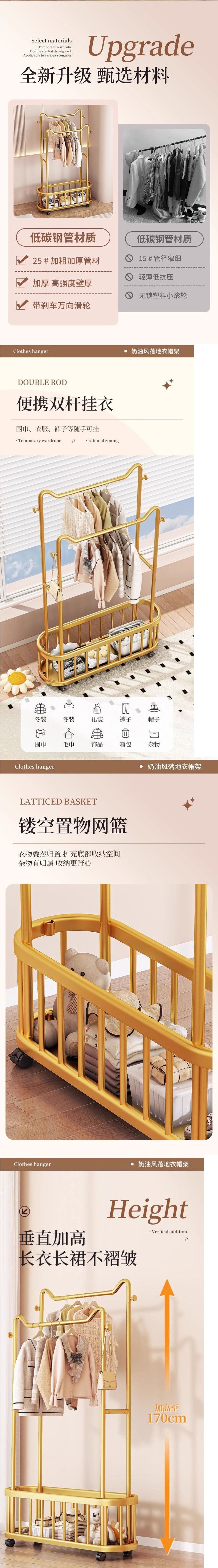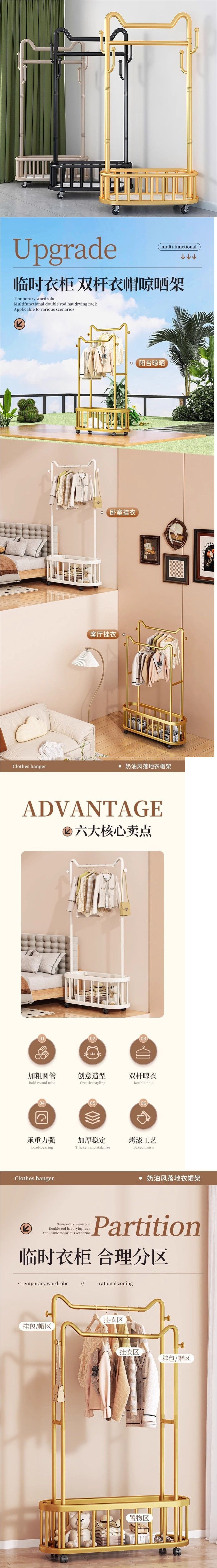 옷걸이 바닥 스탠딩 수직 옷걸이 이동식 바퀴가 달린 가정용 수납 옷걸이 거실 인터넷 연예인 가벼운 간단한 코트 랙