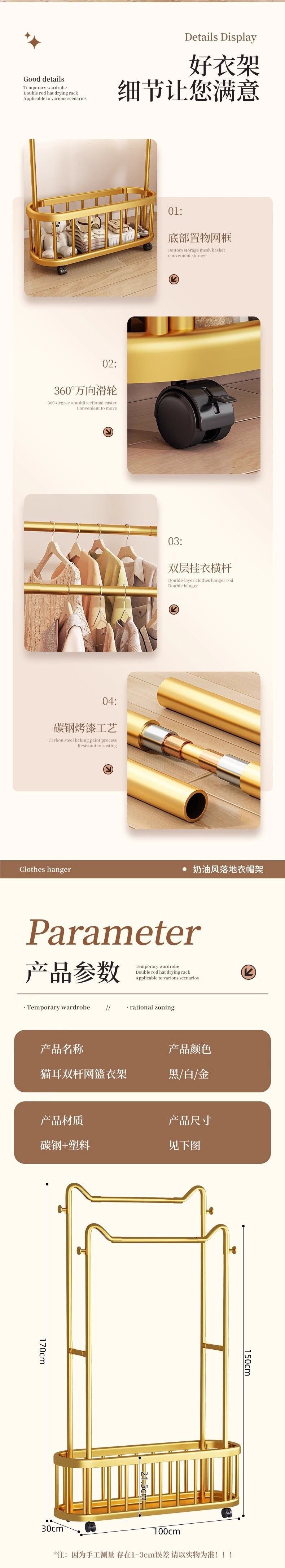 • 【】길이 111CM丨수납바구니 + 범용바퀴