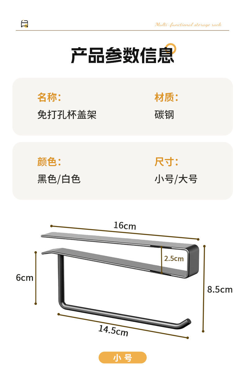 국경 간 새로운 펀치없는 주방 컵 뚜껑 주최자 가정용 컵 뚜껑 보관함 캐비닛 교수형 주방 종이 타월 홀더스토어 가기