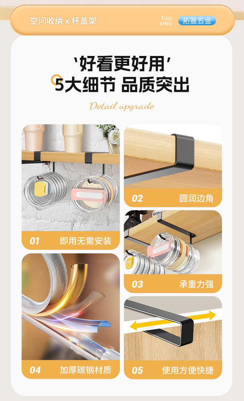국경 간 새로운 펀치없는 주방 컵 뚜껑 주최자 가정용 컵 뚜껑 보관함 캐비닛 교수형 주방 종이 타월 홀더