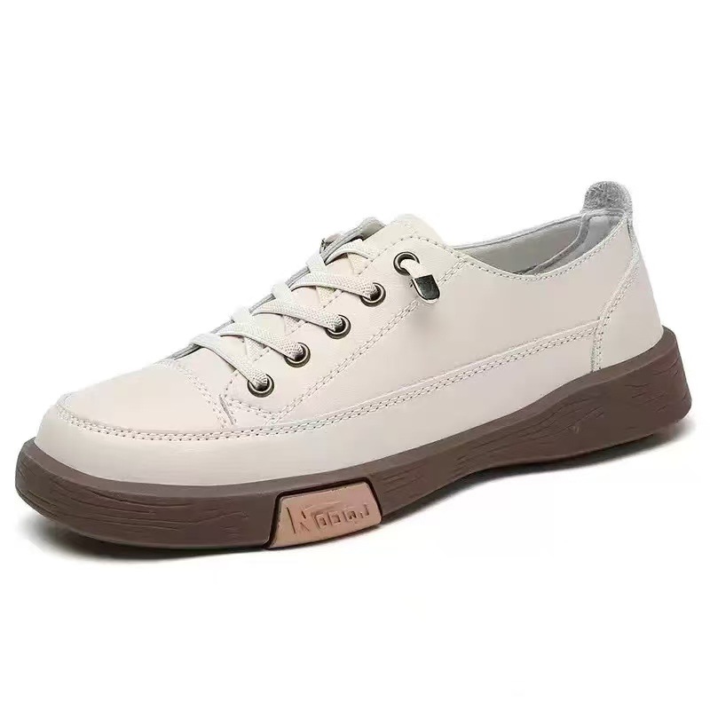 여성을위한 정품 가죽 흰색 신발 봄과 가을 2023 새로운 스타일 소 가죽 바닥 여성 신발 부드러운 밑창 가죽 신발 한국 스타일 싱글 신발 복고풍 캐주얼 신발