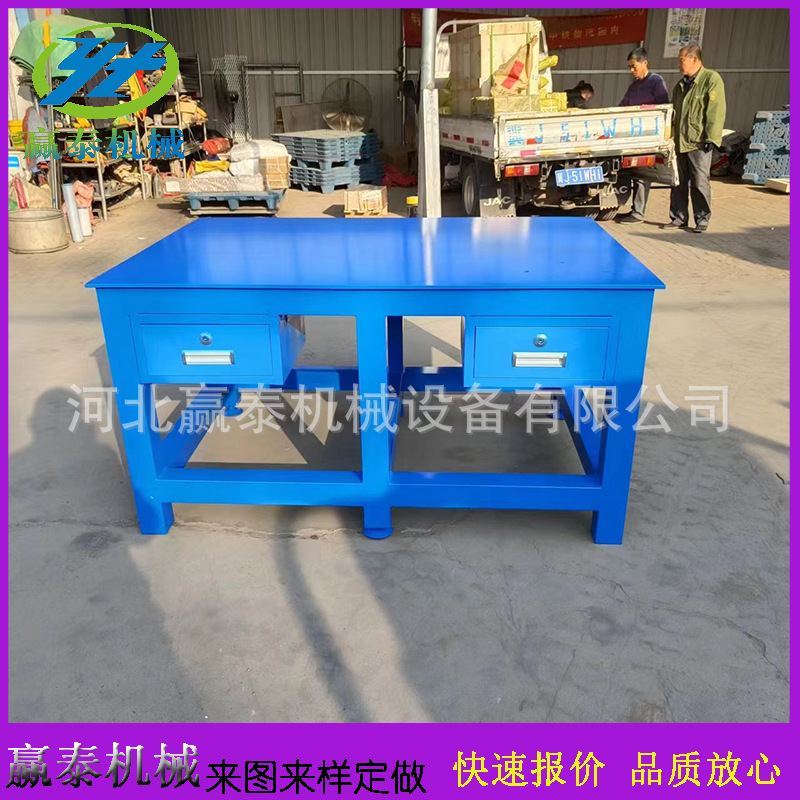 工作台是行业重型操作台,每一种规格都是可以承重的,上面为您展示的偏小一点规格的工作台承重都能达到1吨以上,每个工作台可以配2个抽屉 一层隔板。桌架都是用的厚型方钢焊接而成。