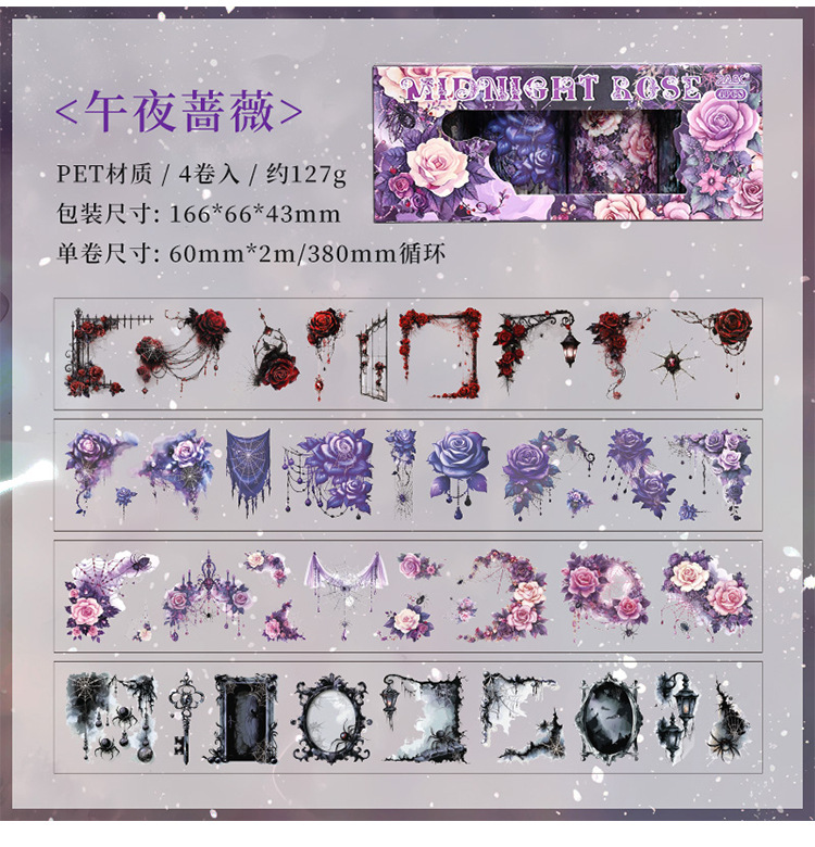 ZABC 크로스보더 로즈 시리즈 박스형 테이프 DIY 핸드북 콜라주 장식 스티커 소재 장식 2가지 스타일
