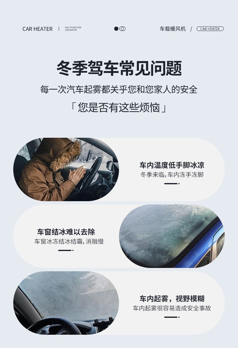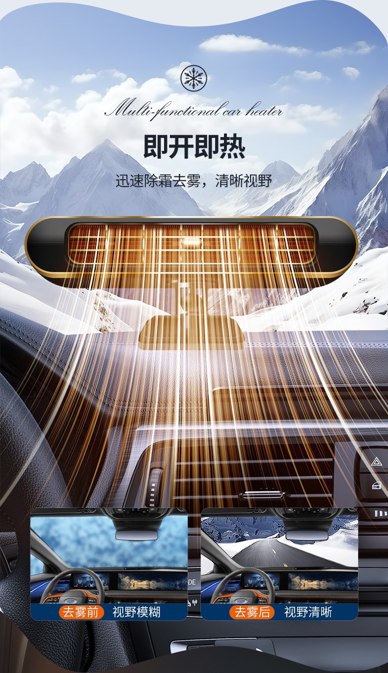 车载暖风机跨境12v轿车前档除霜除雾急速取暖器